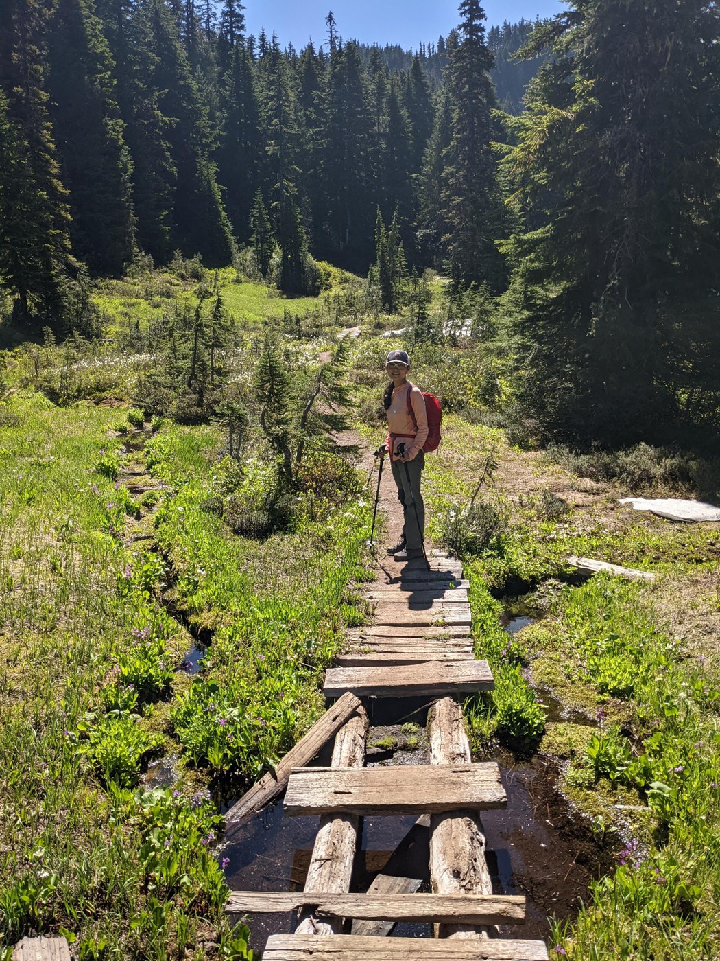 In general, we were awed by how well maintained the trail is. As you enter Seattle Park there there is a small bridge where some of the wooden boards are not nailed down. As we were crossing a frog jumped up from the stream and one of us lost balance on the board that was not nailed down and stepped fully into the water. No injury. Just a funny incident.