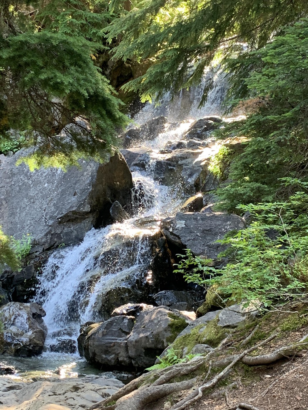 One of my favorite hikes so far, the first couple of miles were forested and just a gentle climb, easy crossing of some creeks, then the climb begins which is rocky, rooty and steep, poles were a must for me. Fortunately it is mostly in the forest and not too hot. The views of the stream and waterfalls were beautiful. I enjoyed my lunch and went swimming at Rachel Lake, the bugs were somewhat annoying and I did use quite a bit of Deet. The steep hike up to Rampart Ridge provides some amazing views of Rachel Lake. I continued on to Alta Mountain but I did turn around about ¼ mile from the top...I was hiking alone and it felt pretty steep and exposed up there. Stunning views from Alta of Mt Rainier, Hibox Peak, Chikamin, Lila Lake and more. I would like to return and spend a couple days exploring Lila Lake and Rampart Lakes.