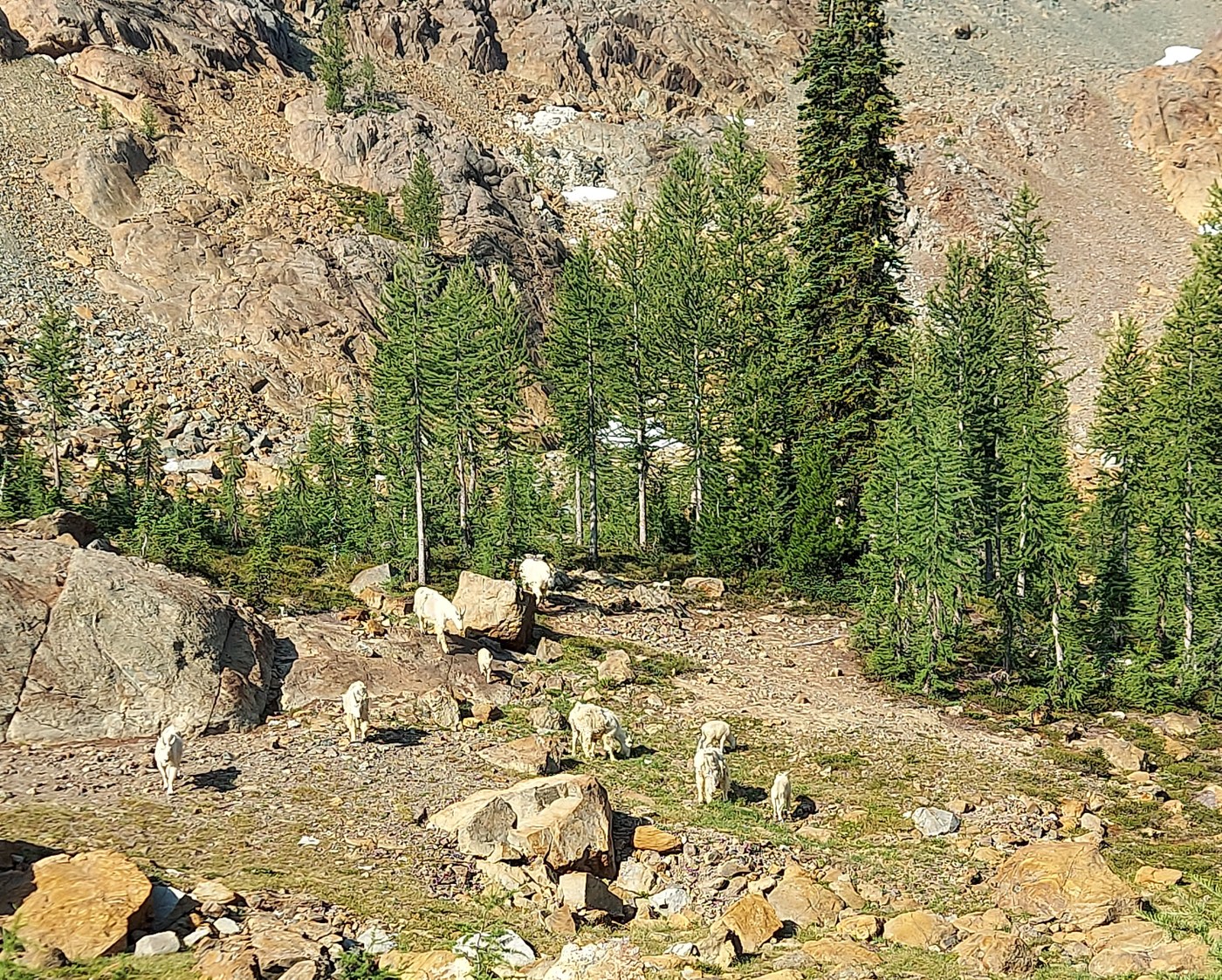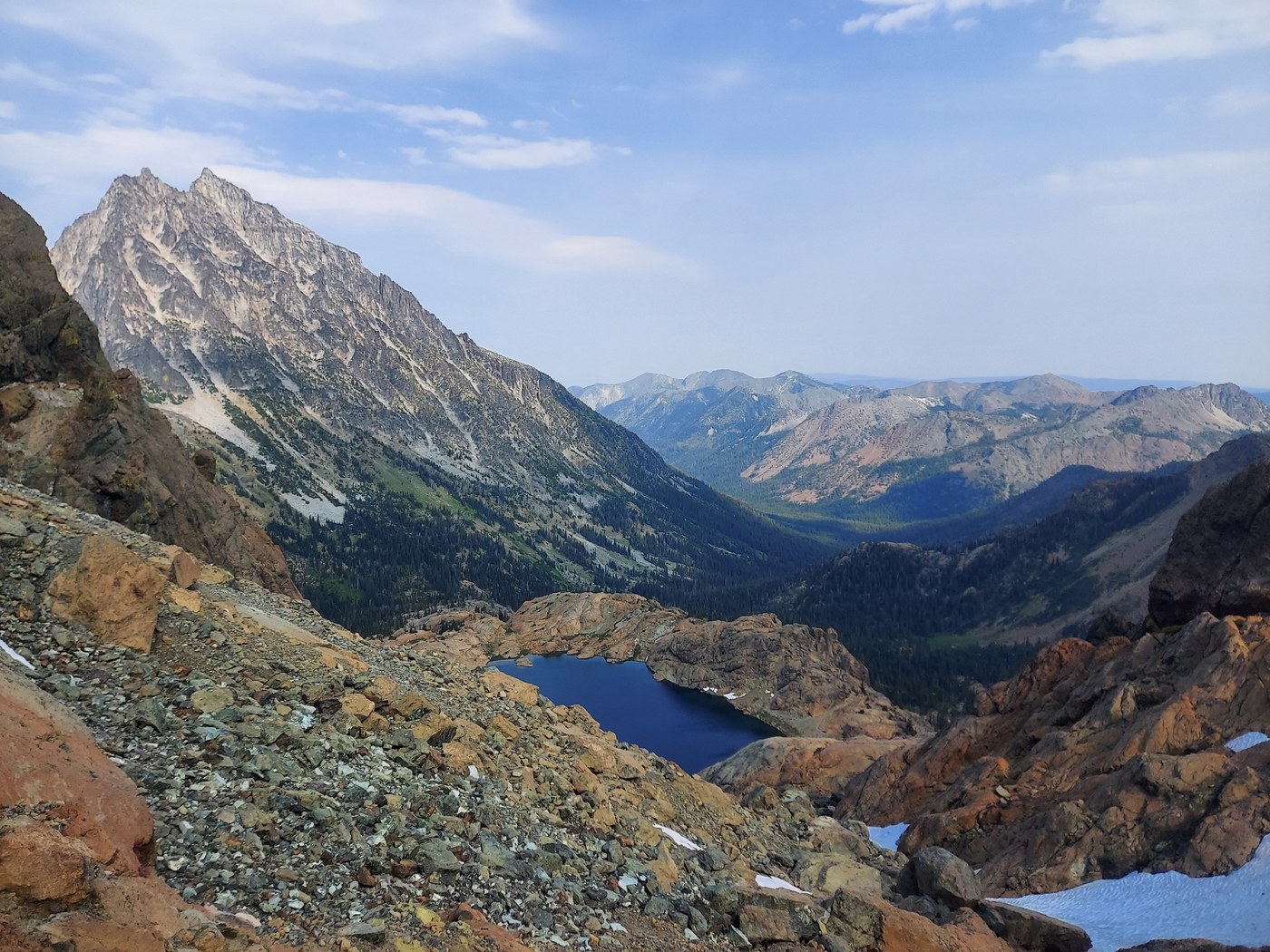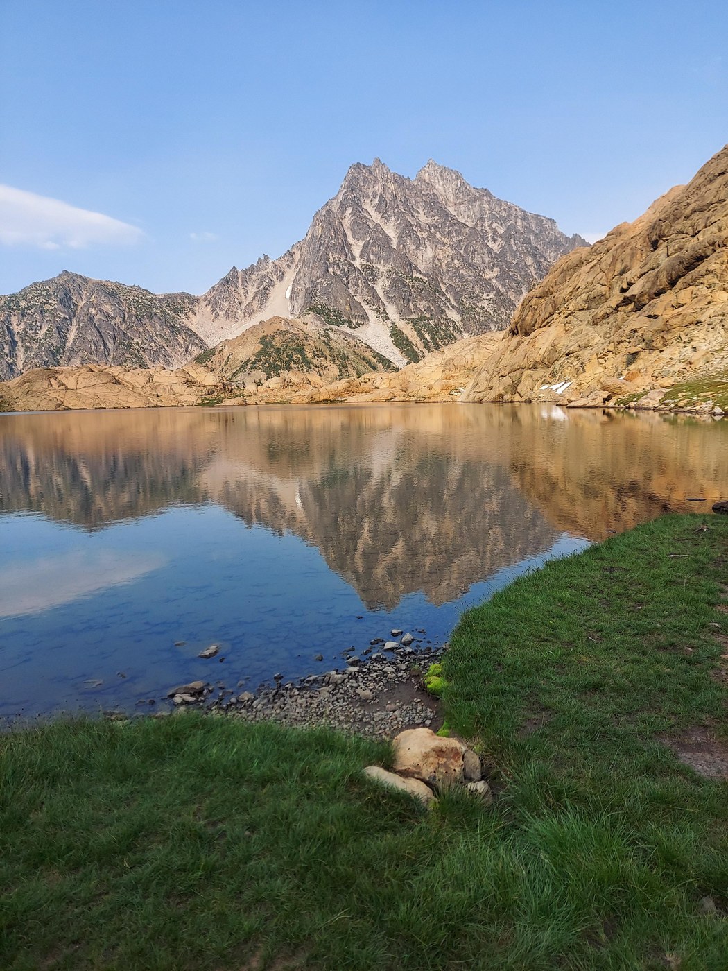 I actually rock climbed the South face of Ingalls Peak, but couldn't find that on this website, probably because it's an actual climb. The weather was good, but hot. We started out at 6 AM and the parking lot wasn't bad for a Friday morning. By the time we came down at 8 PM it was full and overflowing onto the road. The road was passable for my Camry, but it had large potholes. Not nearly as bad as the road in to Fall Creek in Capital Forest though. We saw a lot of people heading up with rope, so my guess is Saturday will be busy up there. I sprayed bug spray multiple times and still got bit, they were awful. There were several tress down on the lower trail, but there were clear work arounds. The climb it's self was awesome and I would totally recommend it. Getting to it requires some serious endurance. There were lots of mountain goats in the area.Take tons of water or a filter to refill at the lake, which is also beautiful. Excellent views of Mount Stewart!