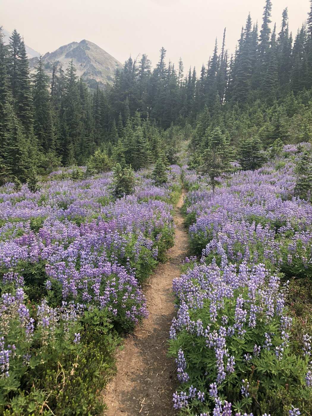 A day trip to Pyramid Peak via Tacoma Creek. As many of you know the Tahoma Creek trail is unmaintained and at the start you have to resort to the river banks/boulders. Regaining the trail about a mile in there are couple of places where landslides have left left the trail just a foot or less wide. I suspect the these places will slide completely fairly soon so bear that in mind if you are heading out this way. Going all the way up the river bed could a possibility depending on the flow and where the Tahoma has decided to braid! From car to suspension took me 2 hours- Im giving my times but you should know I’m 66, slow but steady! From the suspension bridge you are on the Wonderland trail so steady uphill at a reasonable grade all the way to the junction with Mirror Lakes trail (1 hr). The wild flowers particularly lupins and aster and louseworts had started a bit back and continued in profusion until Pyramid Peak base 1hour. The trail is easily followed. From the base to the peak took me 1.5 hours, I found it hard work on the legs and lungs, note to self must train harder! I enjoy scrambling on rocks so found the upper section much easier than the steep dirt trail lower down, not sure why this classed 3 as a scramble??? I certainly had to use hands on the steep dust but not on the rocks. Despite appearances there is a big flat top to Pyramid, covered with low growing juniper. Lovely breeze on top so no bugs but clouds started piling in so I didn’t stop long. Didn’t fancy slithering down mud if it started raining. Ofcourse clouds all cleared by the time I got down 1hour later. From here lovely meadow wandering then descent to the suspension bridge in 1.5 hours.On to car 1.75h. At the end of a long day the boulder hopping on the creek banks was tiring and took concentration but was OK. The variety of rock is fascinating.