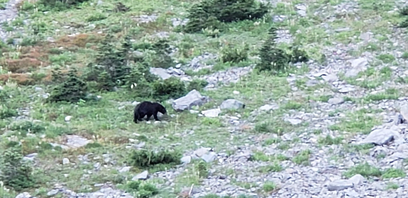 I got to Cedar Lake pretty early in the day and spent all the next day there as well. The two campsites at the outlet stream are in good shape. The bugs were thick, but long sleeves, pants, and a head net kept them at bay. The trout were jumping like crazy through part of each day. And I was able to watch a bear graze his way along the hillside. The way trail to the other end of the lake is pretty muddy, but that seems to be normal.