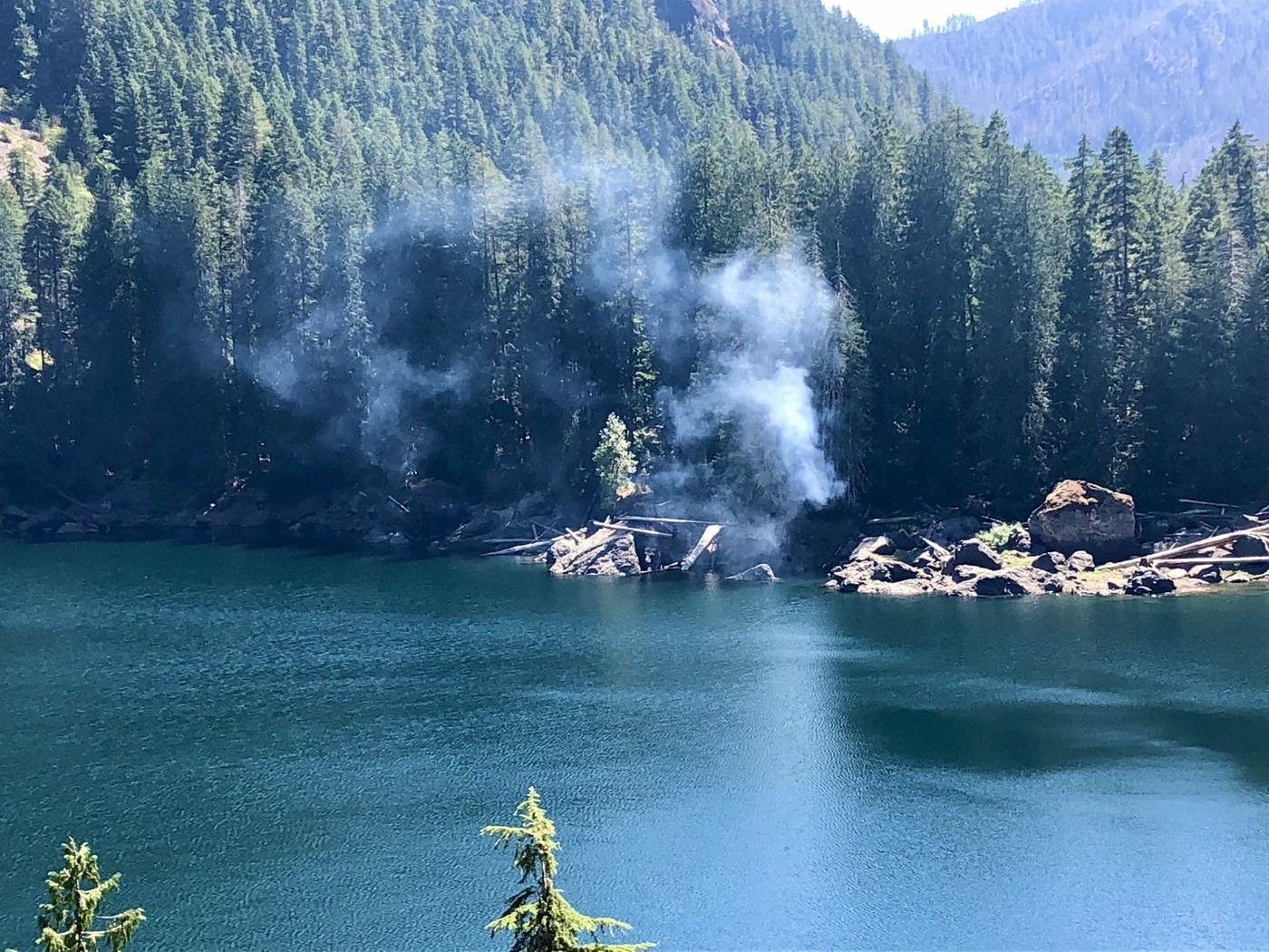 Beautiful day!!! Hiked a ways past lower Lena, up the trail towards the Brothers. Noted fire, (apparently caused by careless campers) on way down. Park Services notified via SOS on Garmin inReach. Helicopters were in the air and passed park personnel heading up the trail with axes and shovels by the time we were halfway to the trailhead. Great response and THANK YOU NPS and Garmin!