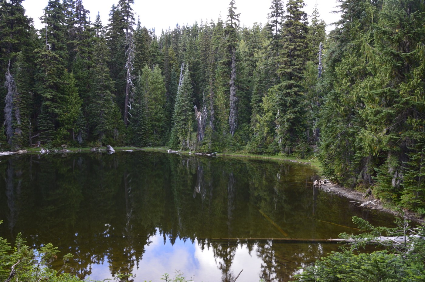 Cougar lakes has multiple campsites but the spit is closed to camping for reforestation. Please respect this. Trail to upper meadows is very brushy and rough at times but well worth the climb.