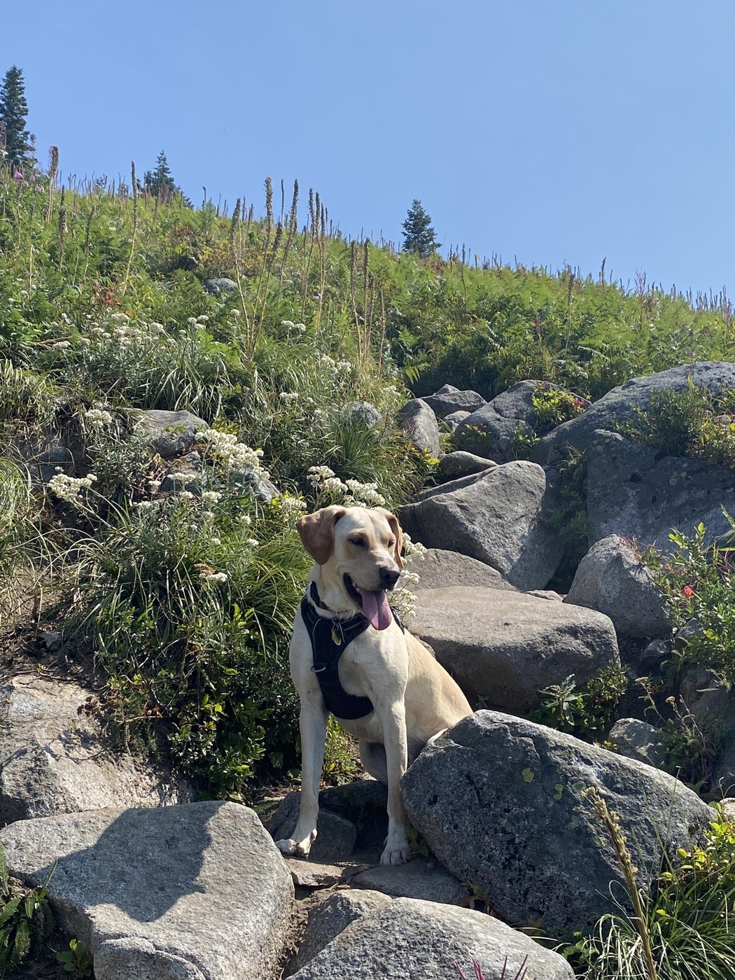 Here is where things get tough. Immediately upon heading towards Bandera, the trail goes straight up, climbing over ~700 vertical feet in just the first ~1/2 mile. This section required the use of hands and legs to climb between boulders and rocks. Watching your step here is very important as your foot could easily get caught between pinch points resulting in a fall and/or injury. This is especially true when heading back down. The trail was very dry as well so watching your footing was even more important as grip was minimal. Ultimately it is right around ~1,000 feet gain in less than a mile, so as you can imagine it is STEEP. We made it through the first really steep scramble section only about 2/10 of a mile before deciding to turn back for various reasons: one was we had a dog who was more than capable and totally in her element, but it felt slightly reckless/unsafe for her safety as well as ours and other hikers, and secondly two of our group members were not entirely at ease with the steepness. Combine those factors with the heat, we called it a day and made our way back down after catching a small glimpse of Mason Lake from the top of the ridgeline.