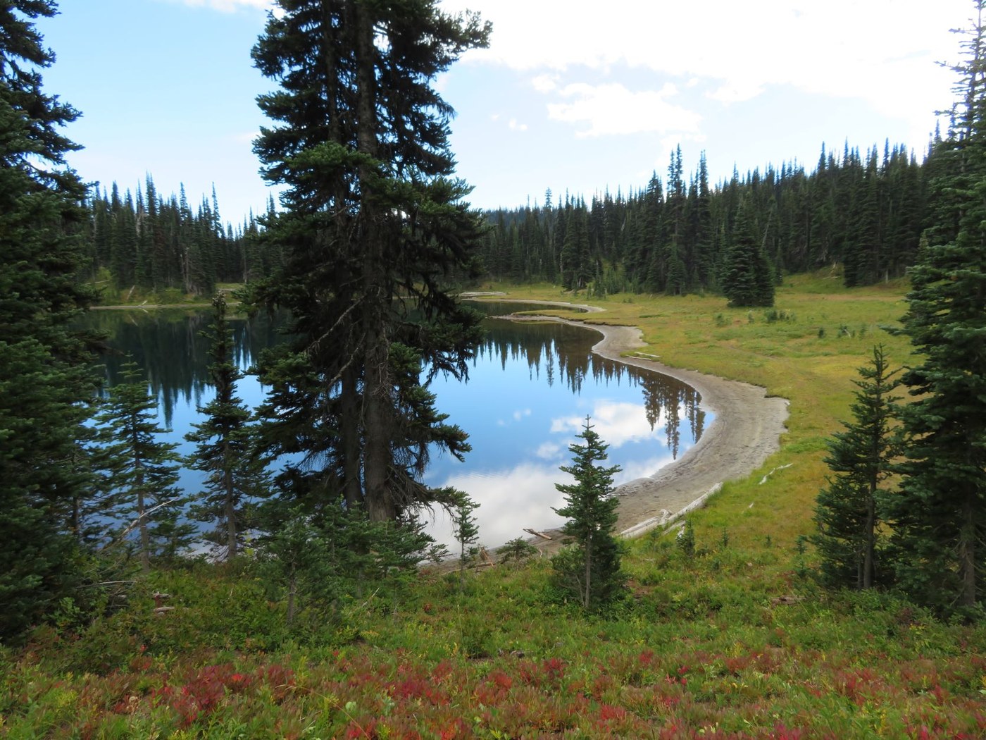 The first person we saw was a solo hiker who reported seeing a bear and cub. Once traffic picked up it seems each person we encountered reported seeing the bear and or bear and cub. Next stop, Hidden Lake. It's a short by steep jaunt up to Hidden Lake, and well worth the side trip not only for the lake views but the huckleberries are especially plentiful along the trail.