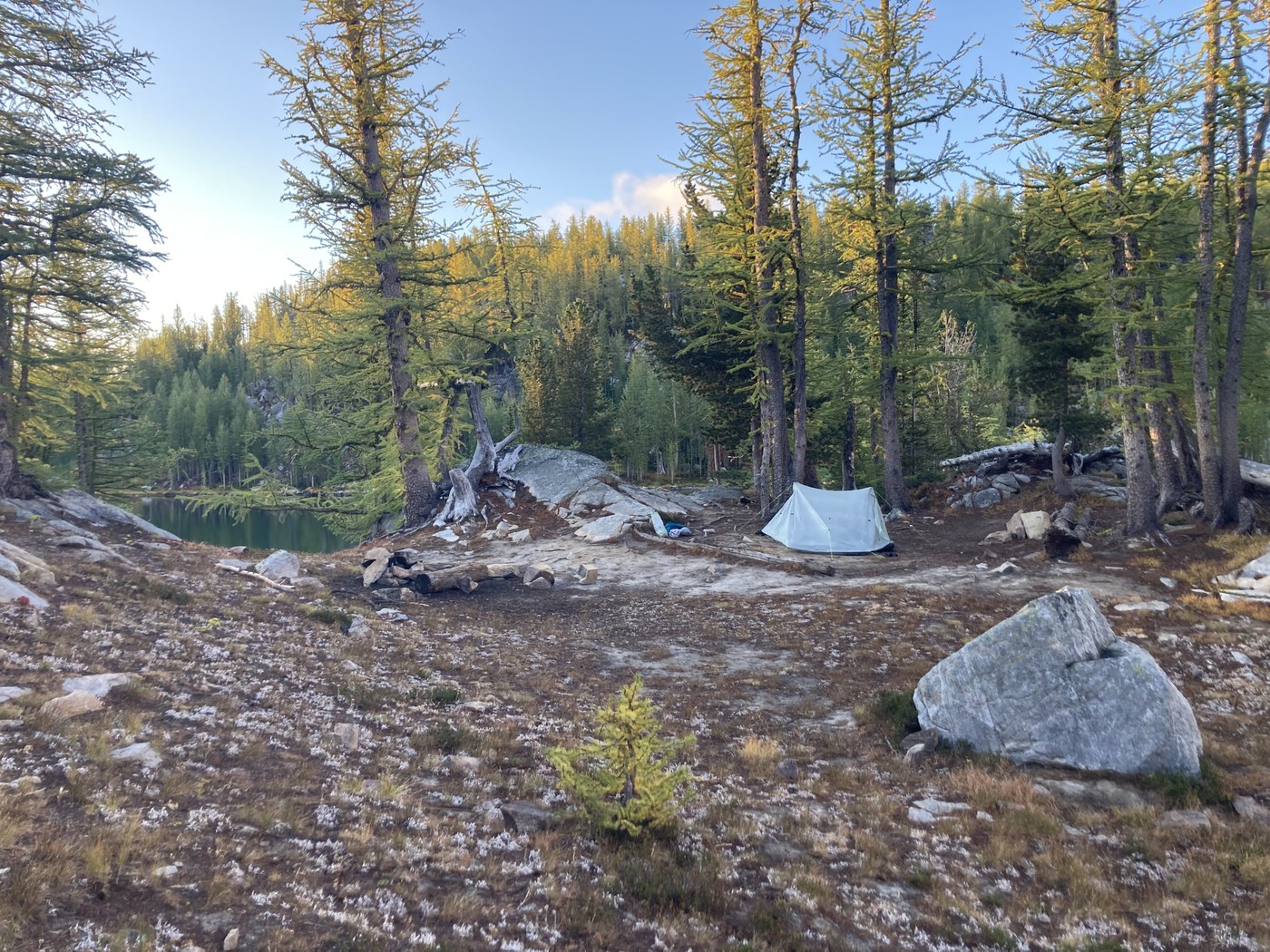 Started at Crater Creek Trailhead and took Eagles Lake Trail to Boiling lake, then up to Angel's Staircase and down to Cooney lake for the night. Saw several mountain and motor bike parties, but no hikers on the trail. Along the way, someone on a mountain bike said a group of motor bikers told him they were charged by a grizzly bear near Cooney lake. I laughed because this was obviously not true, but the man insisted he was serious. So that was odd...we never saw a grizzly bear, but did see a black bear on our way up to the top of Angel's Staircase. We called out and he took off running in the opposite direction, so not the kind of bear who is charging people. We saw 2 other tents at Cooney lake, and set up at the far end of the lake. My husband fished for a bit and said it was one of the best lakes he's ever fished in! In the morning we saw fresh bear tracks by the lake! *There is one confusing turn to make note of.* When leaving the lake and returning to Crater Creek Trailhead, there is a tree that says "Martin Creek Trail", you want to go left. The turn is almost hidden and we ended up going the wrong way for a little bit.