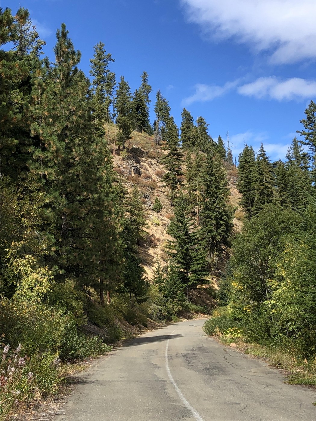 Old Blewett Pass Road is an adventure opportunity year around. It makes for great hiking, biking (uh, which I might have done today, let’s just say the descent from the pass took me about 10 minutes 😊), skiing and snowshoeing. Of course in winter it is sometimes on weekends infested with snowmobiles. Even then, there are nearby opportunities to snowshoe or ski at Iron Ck, Hurley Ck, Pipe Ck, and several others. Old Blewett makes for a great walk in other seasons. It takes off on the left right after passing MP 159 ( heading north on 97). DO NOT stop on the road to wait to turn left. There are cars and huge trucks following you, many going over 70 mph. Just past the turnoff, you can make a right on Hurley Ck Rd and then wait for the traffic to break to get back to Old Blewett. It is 4 miles and a gain of around 1000 feet to get to the pass on this road. The north side takes 6 miles to get all the way down to 97 and gains (or loses, depending on which way you’re going) more. Both sides are quiet and peaceful, and often, few or even no cars. Sometimes there are a few bikers or people prospecting along the way. This is an old gold mining area and still active for some hopefuls. From the top of the pass, you can turn left (west) and find your way through the network of roads down to Iron Ck Rd and make about a 10 mile loop of it. This does, of course , require a hike back along the highway, which can be avoided by walking parallel to the road on the north side ( the road is heading kinda east here). Anyway, there are a lot of potential adventures around here, and high on the road, good views of Red Top, the Iron Bear area, and mountains and forests to the east. I never get tired of Old Blewett, and I’ve been coming here for about 45 years, summer and winter.