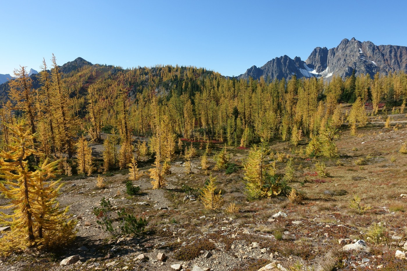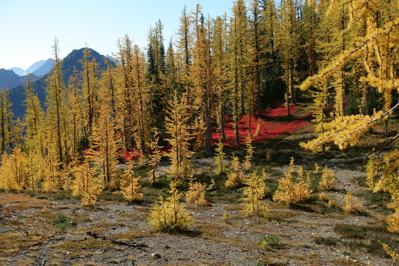 We had blue skies and nice fall color. The Larch are turning yellow. Some are still green, but many have a nice yellow color.