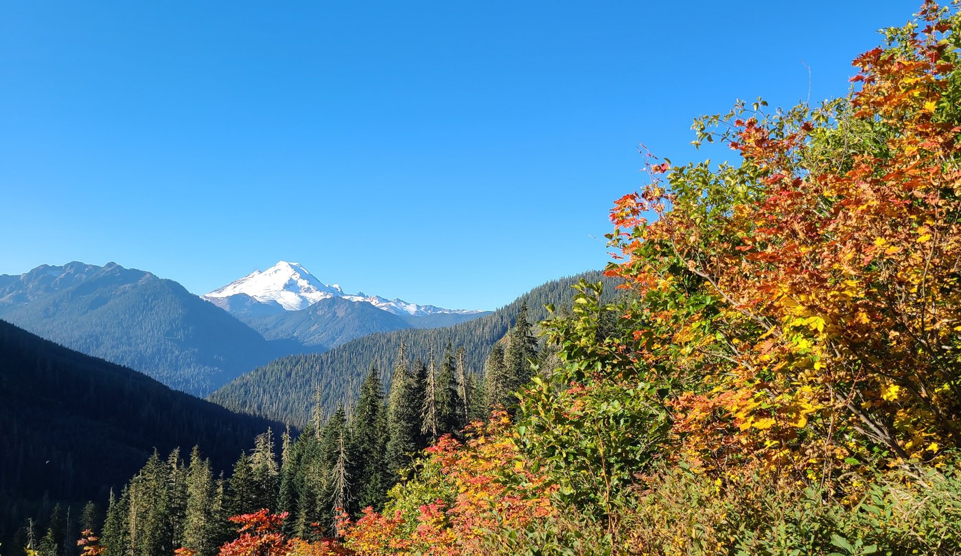 Beautiful fall colors about, and ripe huckleberries and blueberries - I found plenty that fell right into my hand and tasted like candy they were so sweet. Plenty of friendly people and dogs on the trail. No children below age 12 or so that I saw.