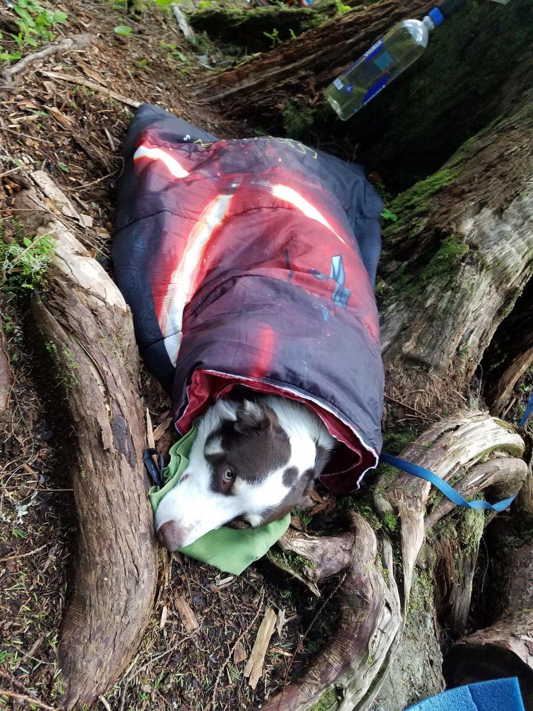 The kids and I took our pup, Ranger, out for (I think) his first backpacking trip and he did great! The four of us arrived at the camping area at Lower Ashland Lake a tad before lunch and set up our tent on one of the tent platforms. For some reason all the fire rings had been dumped in a pile over by the (nastily FULL) outhouse. This drastically reduced the number of officially designated camping spots at Lower Ashland. A large group of scouts arrived later in the afternoon and we were all packed in pretty tightly among the trees. The kids LOVED having others to play with and it was a great fun trip! Ranger did wonderfully well and only barked once through the night at a neighbor's potty run lol! Beautiful couple of days in the woods with my cute little adventure buddies!