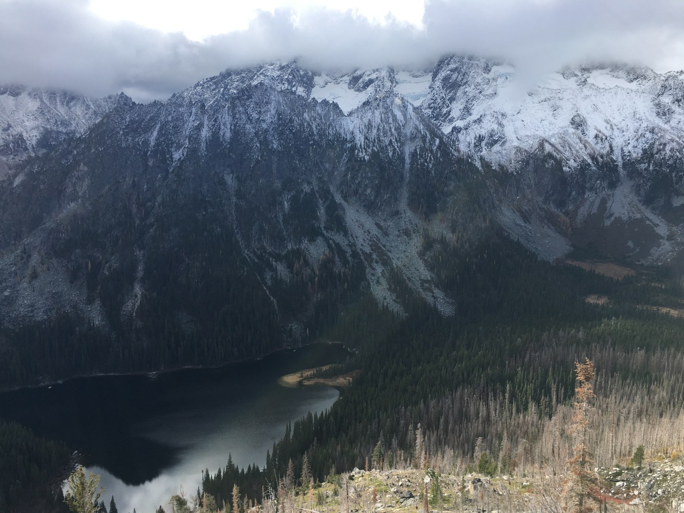 Coming down the steep slope of Axis Peak to Lake Stuart was not that bad. The scree skiing was actually fun. The best part was the views, as they were right in your face the whole way down. It was very cool to see the glaciers on the north side of Mount Stuart. If the views were this great on a cloudy day like today, I can only imagine what they will be on a clear day. I definitely need to come back here!!