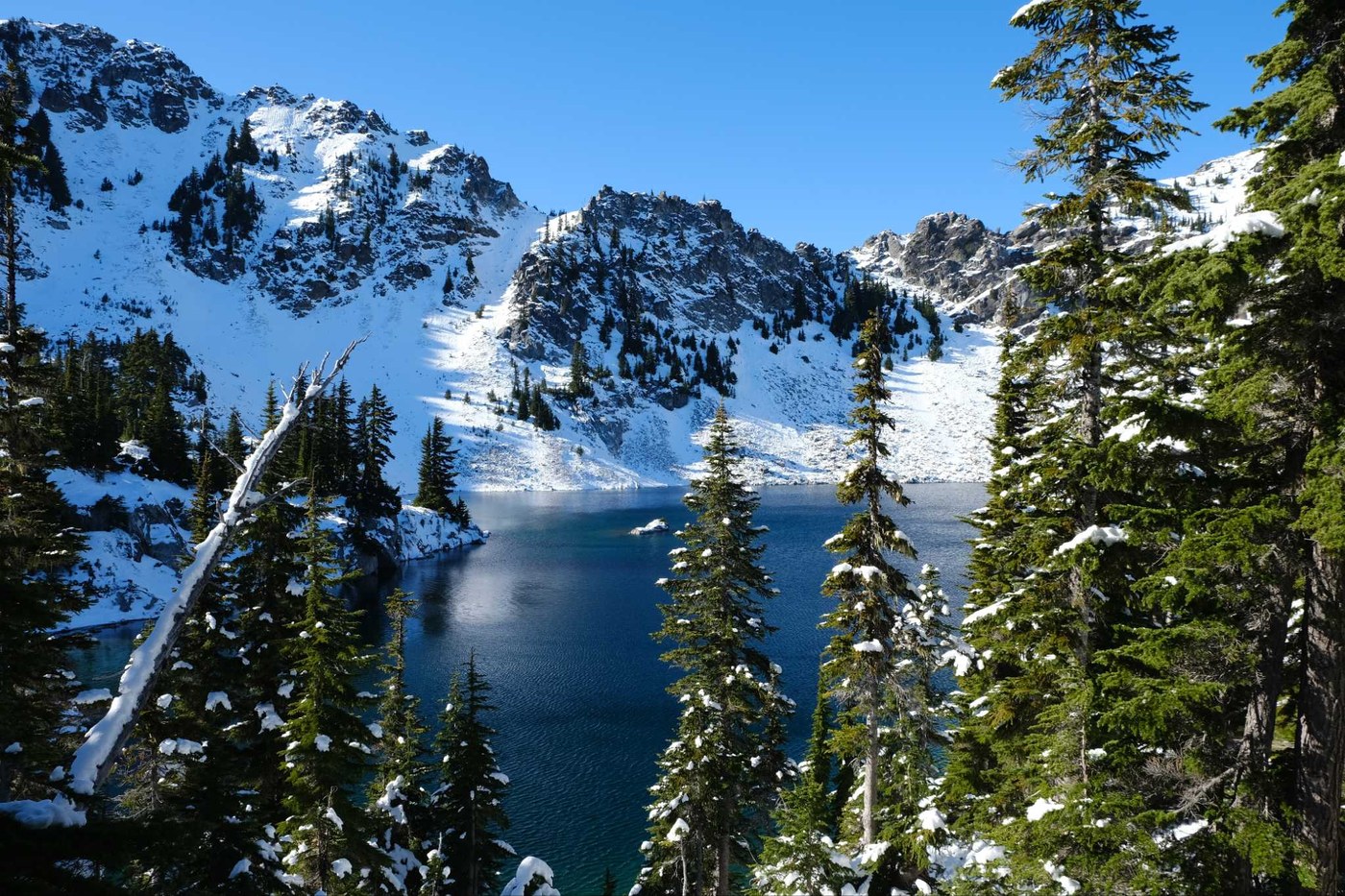 A little snow on the road. Definitely gonna want some traction after around 4500ft elevation. Very deep snow around the lake.