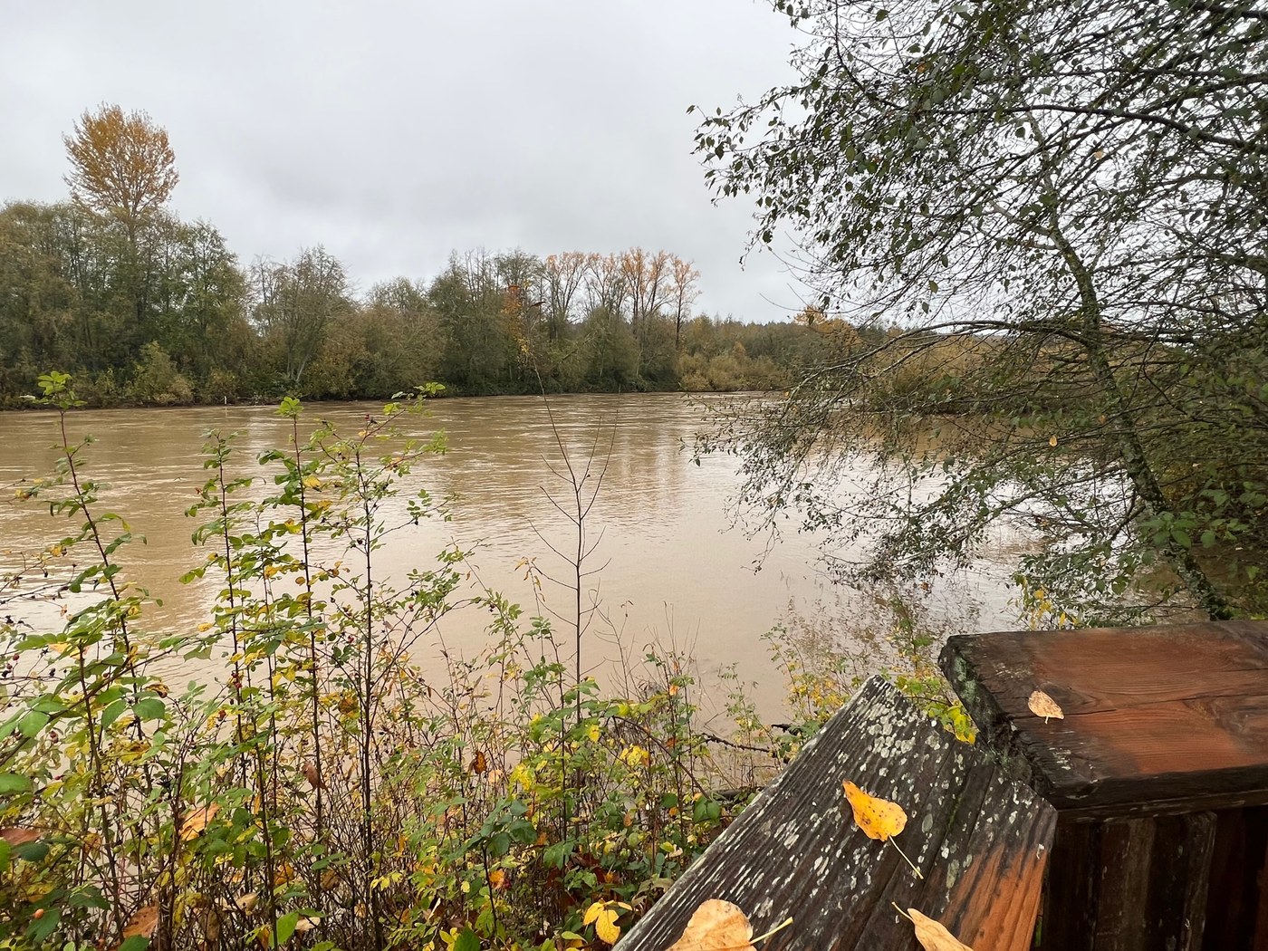 I woke up this morning planning to head up to Twin Falls after seeing reports of the raging water yesterday, but ultimately didn't feel like driving the hour and a half from Olympia. So, off to old faithful it was! I wanted to check out the river level and found that the Nisqually is running very high, and very fast!