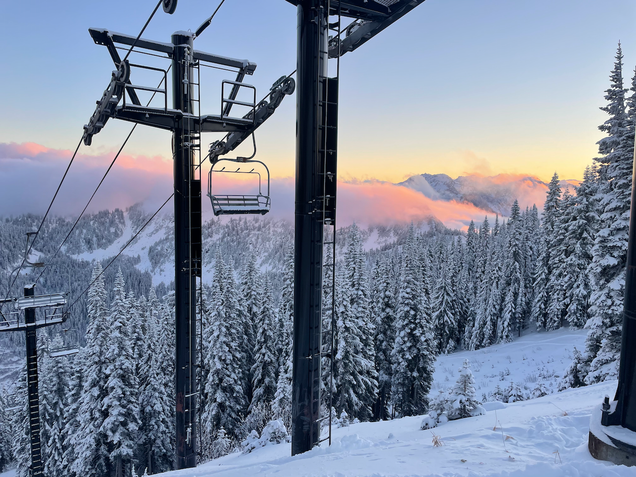 We made it over to Double Diamond Chair, right as the sun was setting and blue hour was starting. It was gorgeous and I was getting really distracted by the pretty mountains (Jim Hill, the Chiwaukums, Nasikelt Peak, etc). The blue hour only made it better.