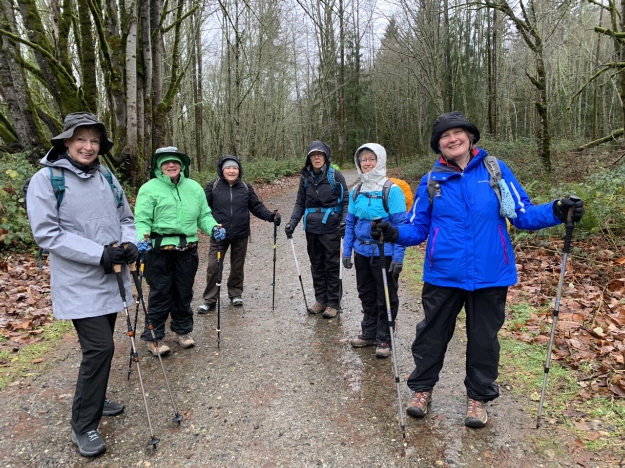 We completed a 5.5 mile counterclockwise loop on Cougar Mtn from Redtown TH. There were only 2 cars in the lot when we pulled in at 9:15 and it was a mix of snow and rain. We followed Red Town, Cave Hole, Coal Creek Falls, Quarry, Fred’s Railroad, Shy Bear, Far Country, Indian and Wildside trails to make our loop back to Redtown. All the trails are saturated, but mostly well drained with a few small muddy patches. As we hiked up Cave Hole trail it started to be a winter wonderland with snow sticking on the ground. A couple of the wooden bridges were slippery due to the snow accumulation. Hiking poles were helpful. Shy Bear and Far Country trails have a few new downed trees to climb over. Trail traffic was super light, we saw less than 10 entires on our entire route. Both Coal Creek and Far Country Falls were really flowing. Bird species were out in force, we saw towhee, juncos, bush tits, creepers, sparrows and a lone shrew scampered across the trail. Due to the weather we didn’t stop much and got back to our vehicles at 12:45. Another fantastic day to be out in nature with friends.