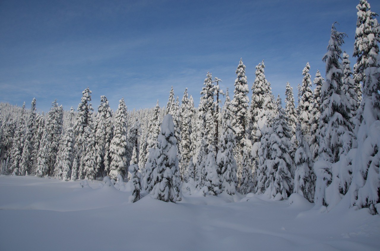 Since Hyak wasn't running there were no downhill skiers and in fact we saw no skiers. The route crosses two usually-groomed tracks so when it is being skied, be aware and try not to damage the tracks.