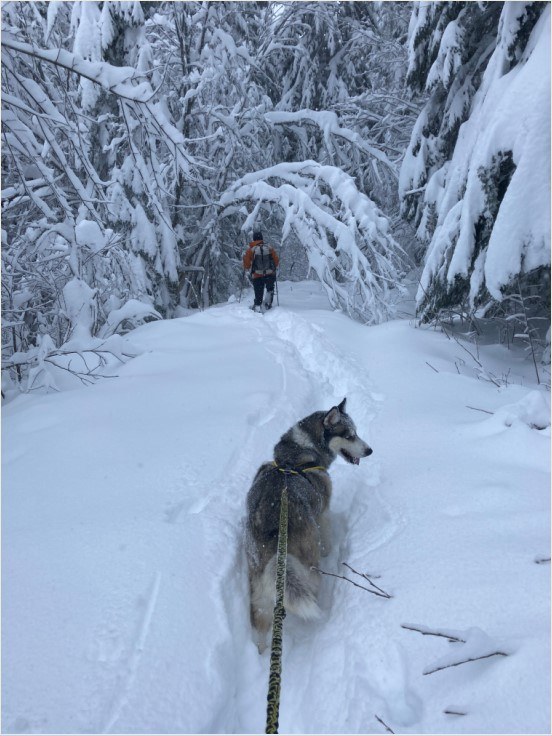 Once we got to the Lower Selkirk SnoPark Lot and turned off for trail 100, we were back to first tracks in deep powder. It was just gorgeous, and we didn't see another person until we were less than a mile from returning to the car.