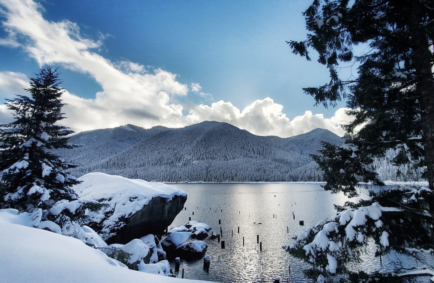 We snowshoed up to Staircase for NYE. The road was passable for passenger vehicles to the Causeway (but we parked at the end of the pavement and walked). After the causeway snow gets deep fast. We put on our snowshoes at the tollgate, after following tire ruts in. It was about 3 feet deep. We attempted to take Shady Lane back to the causeway, but it seemed treacherous in snowshoes and unpassable without. Snow was multiple feet deep after the ranger station.