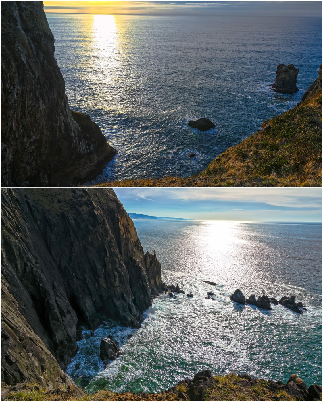 Back at Short Sand Beach, the tide had gone out and the beach was transformed. The ocean... ever changing :) The sun was getting low, and we decided we had seen plenty for the day, and the trek out to Cape Falcon (directly accessible from a trailhead at Short Sand Beach) would have to await another day. Next stop: Pelican Brewing in Cannon Beach (recommended, and options for food to-go if outdoor seating is closed).