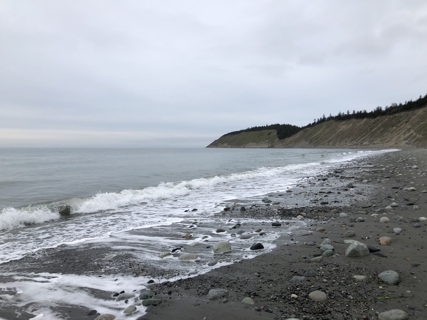 After a couple miles we reached the end of the bluff trail, heading down a couple switchbacks to the beach. There seemed to be a sturdier trail that follows alongside the lagoon, but we preferred to just walk the rest of the way on the beach. It was incredible to view the expansiveness of the bluff from down by the water, plus the sound of the waves was enchanting. We found many beautiful rocks and interesting shells and were always on the lookout for sea life, but didn't have any luck. When we reached the parking lot on the far south end of the beach there were stairs back up to the Bluff Trail. From here we quickly got to the junction with the trail that passed the Ebey houses and headed back to the parking lot.