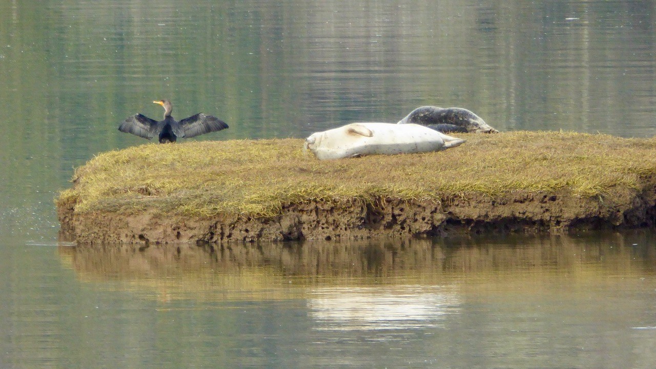 A terrific early spring hike for the entire family. An easy 4.0 mile round trip if you hike to the end of the boardwalk from the parking lot. The visitor center was closed but the restrooms were open. Many migrating birds were present along the dike path and throughout the area but especially in the flooded grasslands. February is the start of the great blue heron breeding season and several pairs were observed. Try to time your visit during an incoming or high tide during the early part of the day to see the variety of waterfowl and shorebirds close to shore. On our visit there were numerous seals basking on the small islands near the end of the walking… Don’t forget your binoculars and a bird identification guide !