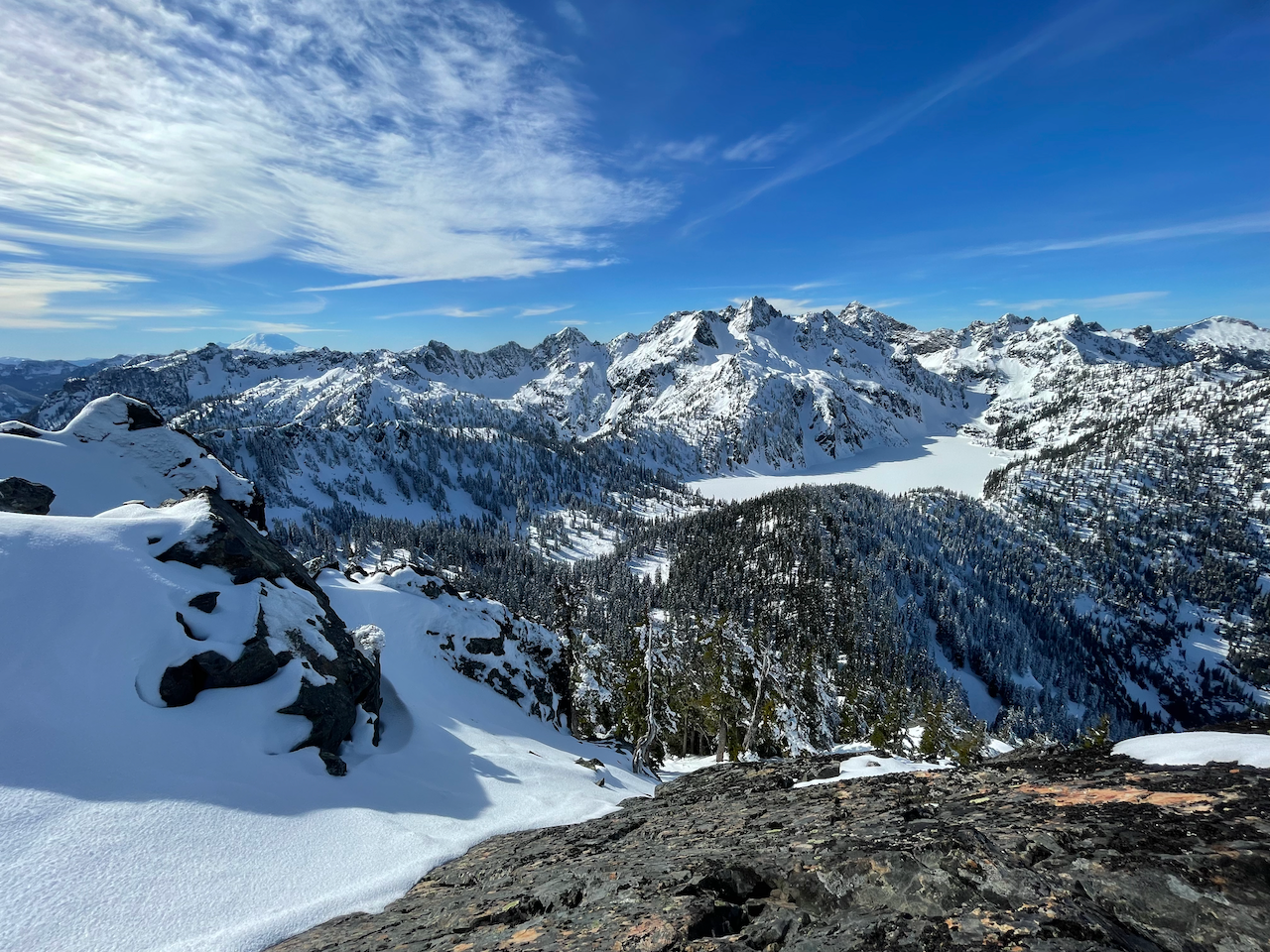 Started at Alpental, went up to Source Lake via the winter route, then went up to Snow Lake overlook via the winter route (access next to Snow Lake Divide). Went cross-country and up to the Avalanche Mountain saddle booting at first, then switching to snowshoes once I hit Snow Lake basin.