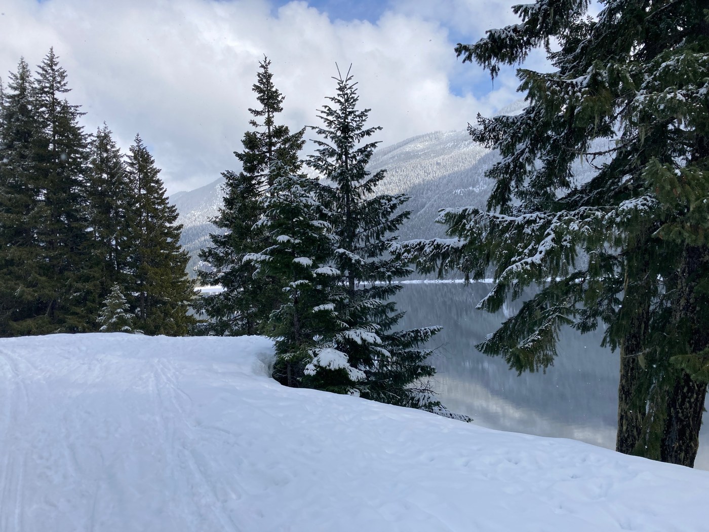 Snowshoe outing with 3 kids (ages 7-13). Parked at Kachess Sno-Park and showshoed to the campground where we had the beach to ourselves.