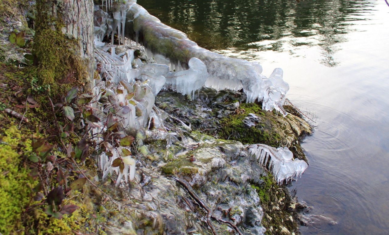 The Cascade Lake Loop trail winds around the lake and has several moderate ups and downs along the way. As of this writing, there are areas of compacted snow on the exposed areas on the trail but those will probably melt soon. There are also a few areas of mud and these are mainly on the north side of the lake. There are also a few trees down over the trail. I was able to step over most of them but one of them was large enough to require some creative maneuvering to get over. The trail ends at the day use area and if you want to complete the full loop, you need to look for the signs across Olga Road. The trail then climbs steeply up a hill, flattens out for a bit, descends back to Olga Road, and requires you to cross the road again to finish the loop at the South End Campground.