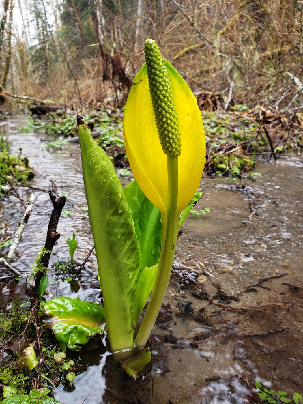 The smell of blooming skunk cabbage fills the air throughout most of the trail. It can easily be seen in large patches along the trail.