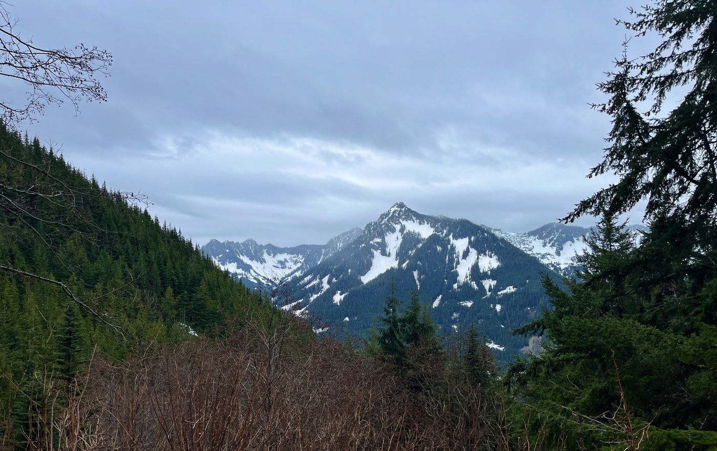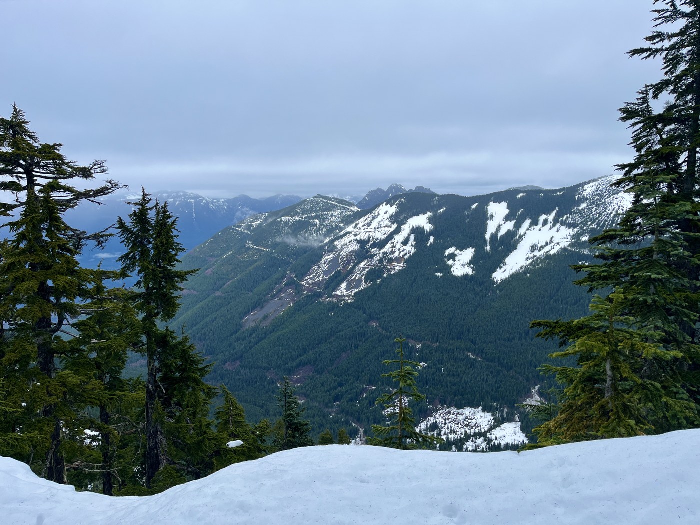 The last couple miles of the trail were snow covered and the snow was slushy and slippery, even with microspikes on. There are a couple of steep sections I took slow on the way down and I came close to falling on a few occasions.