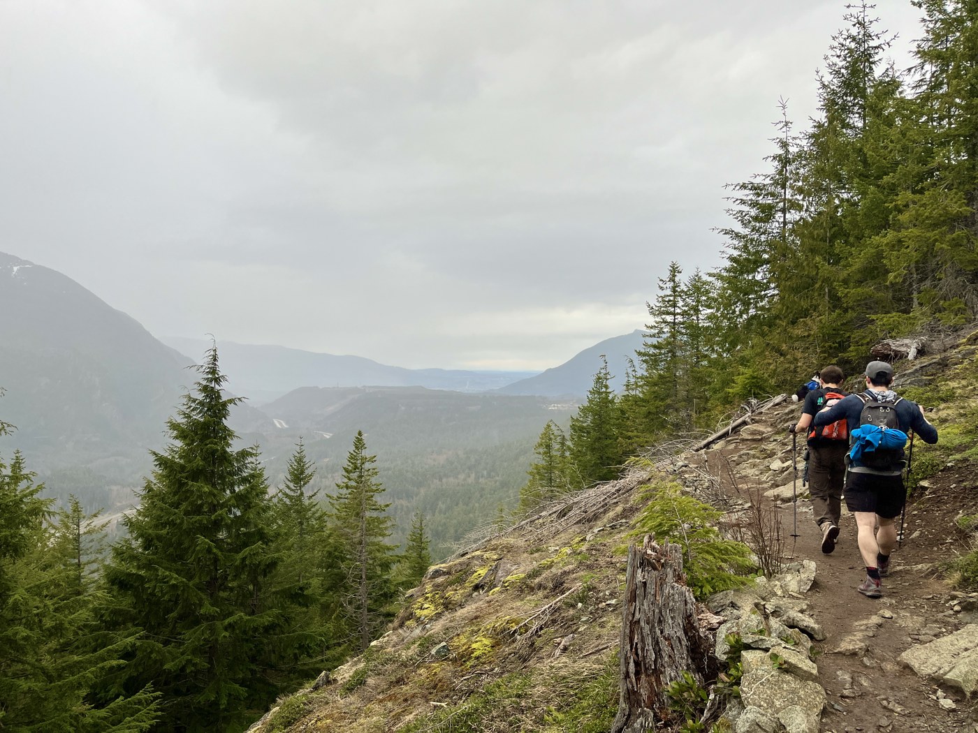 I wouldn't consider the trail sketchy or anything, but taking a spill would be easy to do, and I wouldn't have attempted without traction and poles.
