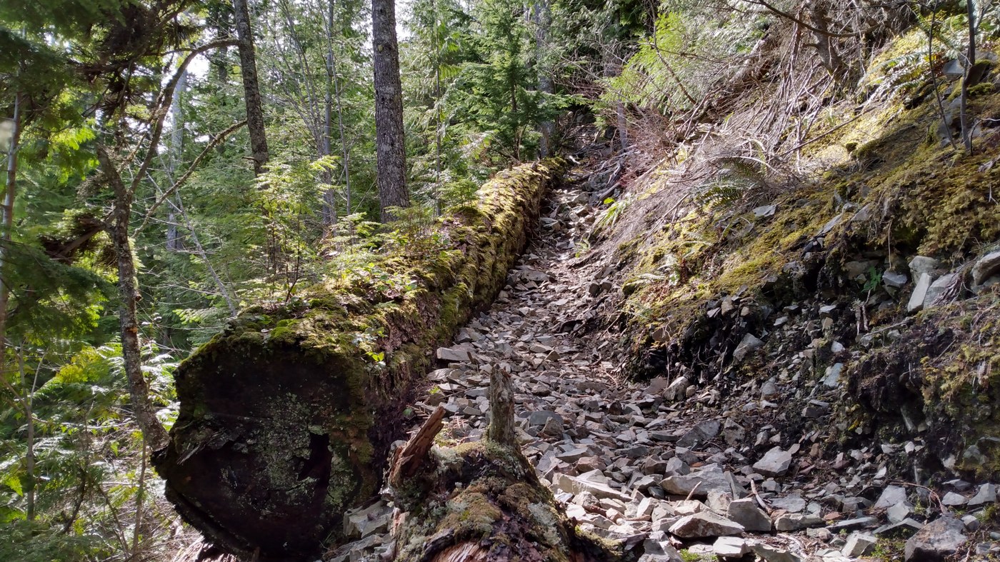 Hiked up to Change Peak today. I really enjoy the Change Creek Trail. Thanks to the builders and maintainers of it. Melting snow coverage began at 2400' and got deep once you exit the trees onto the old road. I think I put my snow shoes on at 3400' briefly. Then I promptly took them off and went straight up to cut the long, meandering switchback. Probably more trouble than it's worth in these snow conditions. I think I would have rather enjoyed the views on the road.