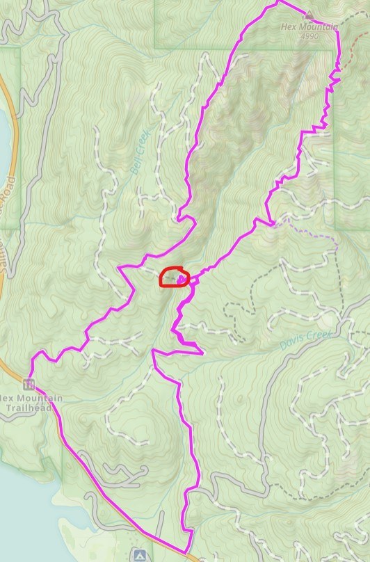 At the top I recommend following the ridge across to the sub-peak, checking out the views, and then coming back the way you came. For the way back we attempted a loop, but the trail was washed out so we ended up with a long road walk back to the car. The trail was nice, but not worth it if we had known. We tried to take the Sasse trail down and use a connector trail to cross Newport Creek and connect back up with the lower section of the Hex trail. Turns out the connector trail has completely eroded away and the hillside it rather unstable with a small cliff/canyon with the steam running through it. We spent a decent amount of time searching for a way across but didn't find one. Based on other reports it seems that this has been gone for some time now. The Sasse trail was nice and had a bit more wildflowers, but also more blowdowns and lacked the views that Hex had.