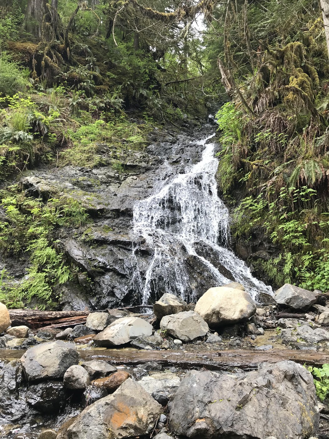 Hit the trail about noon, still plenty of parking on side of road by trail sign. Very few folks for Memorial Day weekend. Switchbacks down for about half an hr, then mostly flat until the closed area. Lots of cool mossy trees to walk through. Muddy in places and be prepared to climb over numerous fallen logs on trail, but a really enjoyable short hike next to river, with lots of old railroad vestiges, rocks, metal pieces, etc. Small waterfall near the end on side of trail.