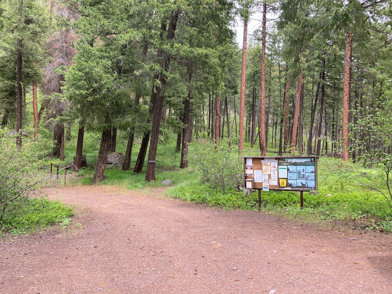 Access: From the Mazama Store, it is about 7.5 miles NNE on the Lost River Road to the bridge over Lost River and the end of pavement. Another quarter of a mile on a pothole deep and plentiful dirt road to a sign that says 'Monument Trail' and road to the right that leads after a short uphill to the trailhead. Forest Service Pass not required. Other than a bulletin board and a place to hitch your horses, there are no other facilities in this relatively small trailhead parking area (Figure 2).