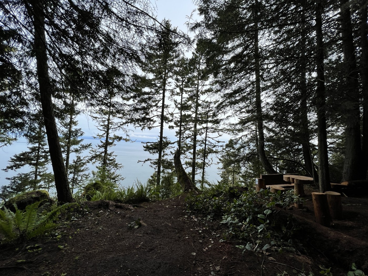 What a beautiful hike! The trailhead is just outside a large campground and the road is paved. The trail winds up and down through an old forest with quite a bit of slash and old, fallen trees. Every few switchbacks you’re rewarded with a glimpse of the ocean. The trails winds to a forest service road and then back on to the hiking path for a loop at the top of the peak. The loop has vast views of the Juan de Fuca straight and Olympic NP. The trail was well maintained, wide and the appropriate amount of ups and downs.