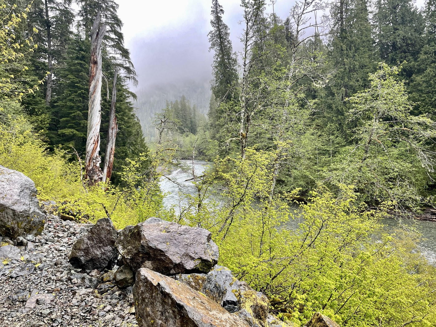 - Trail is 90% snow-free, only the last 1/4-mile before Ohanapecosh Falls had some patches, nothing dangerous