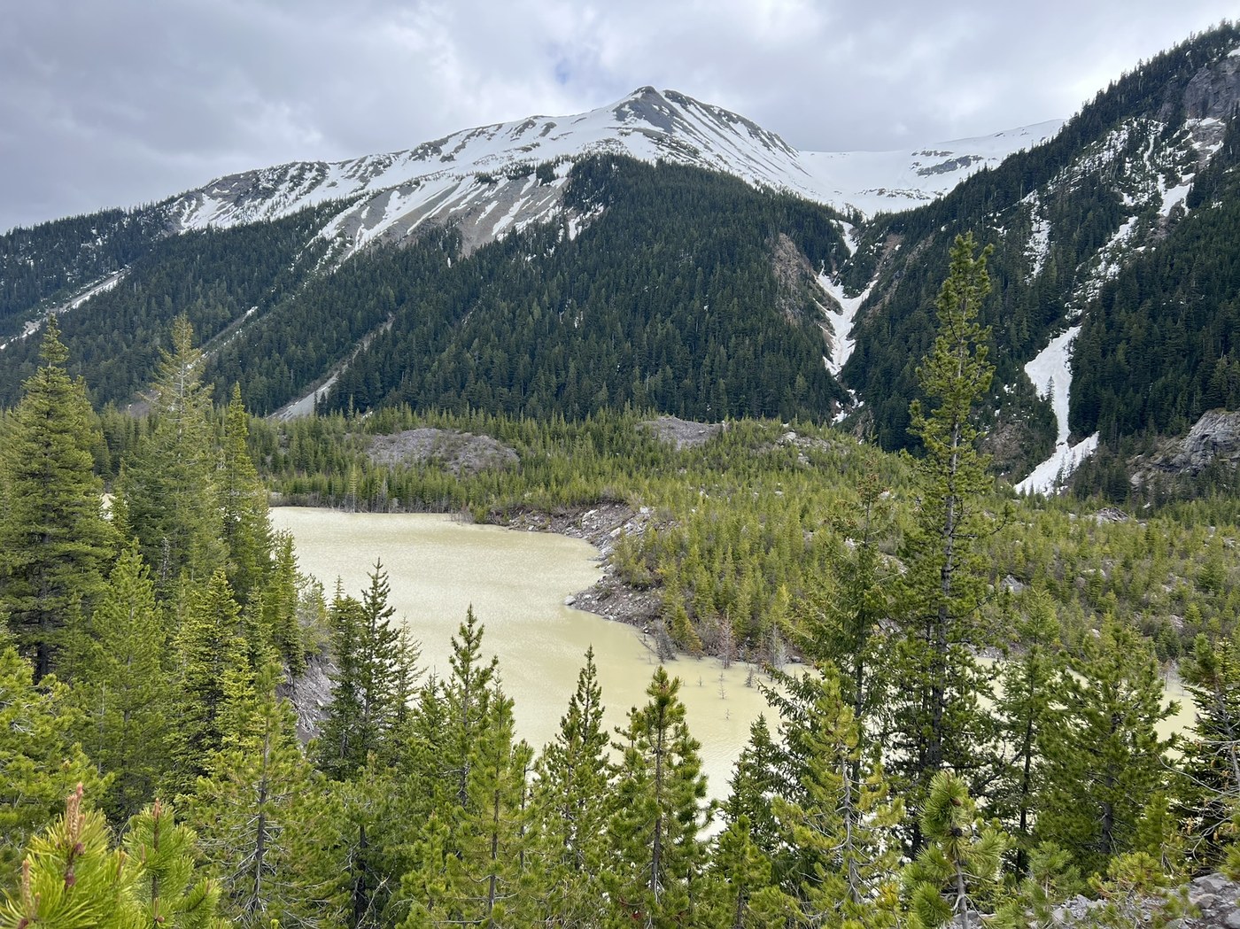 Excellent day for a hike. The trail was clear and we only passed a few hikers on our way in, saw a few more on our way out. The river crossing isn’t ideal, but manageable with poles. The log is steady. The lake was not very pretty on the other side, very muddied. But the view of Emmons was fantastic! We sat and ate lunch and watched the clouds blow over. Only saw a couple of mosquitoes the whole time. We made it up in 50 minutes and hung out for about 30 mins or so.