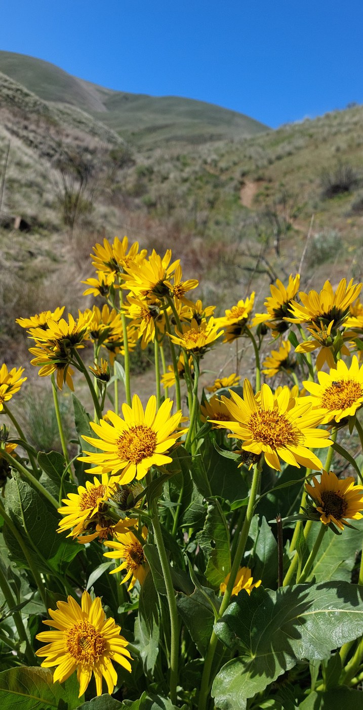 The north face (where the trail is) is still early season blooms. There's still several weeks of great blooms to come. The balsamroot has barely started except at lower elevations. It was really starting to open up along the Yakima River.