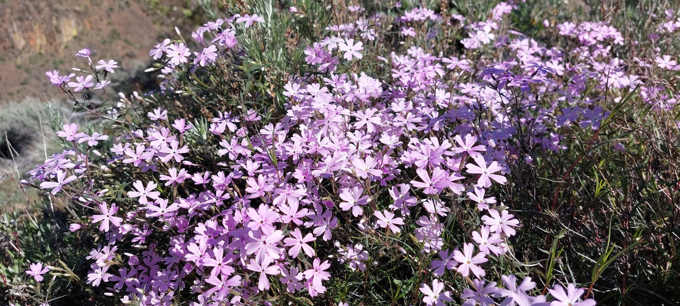 Other than some loose rocks, the trail was in good condition. While dry now, this is not one to try muddy unless you enjoy butt sledding on clay all the way back to the car. The flowers are really good right now. Several species of balsamroot are showing off, and the trail up the north side of the ridge is lined with goldstar, bluebells, shooting stars, lomatium, prairie stars, showy phlox, serviceberry, and more. I brought binoculars and could not believe how thick the vibrant magenta shooting stars were on some of the upper north facing slopes!