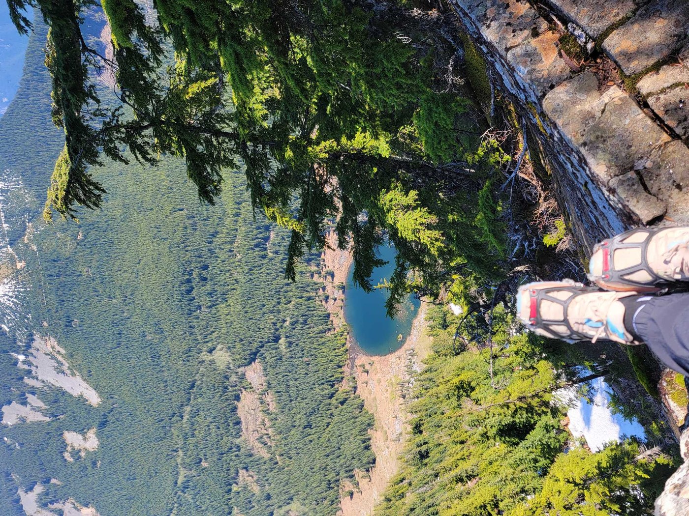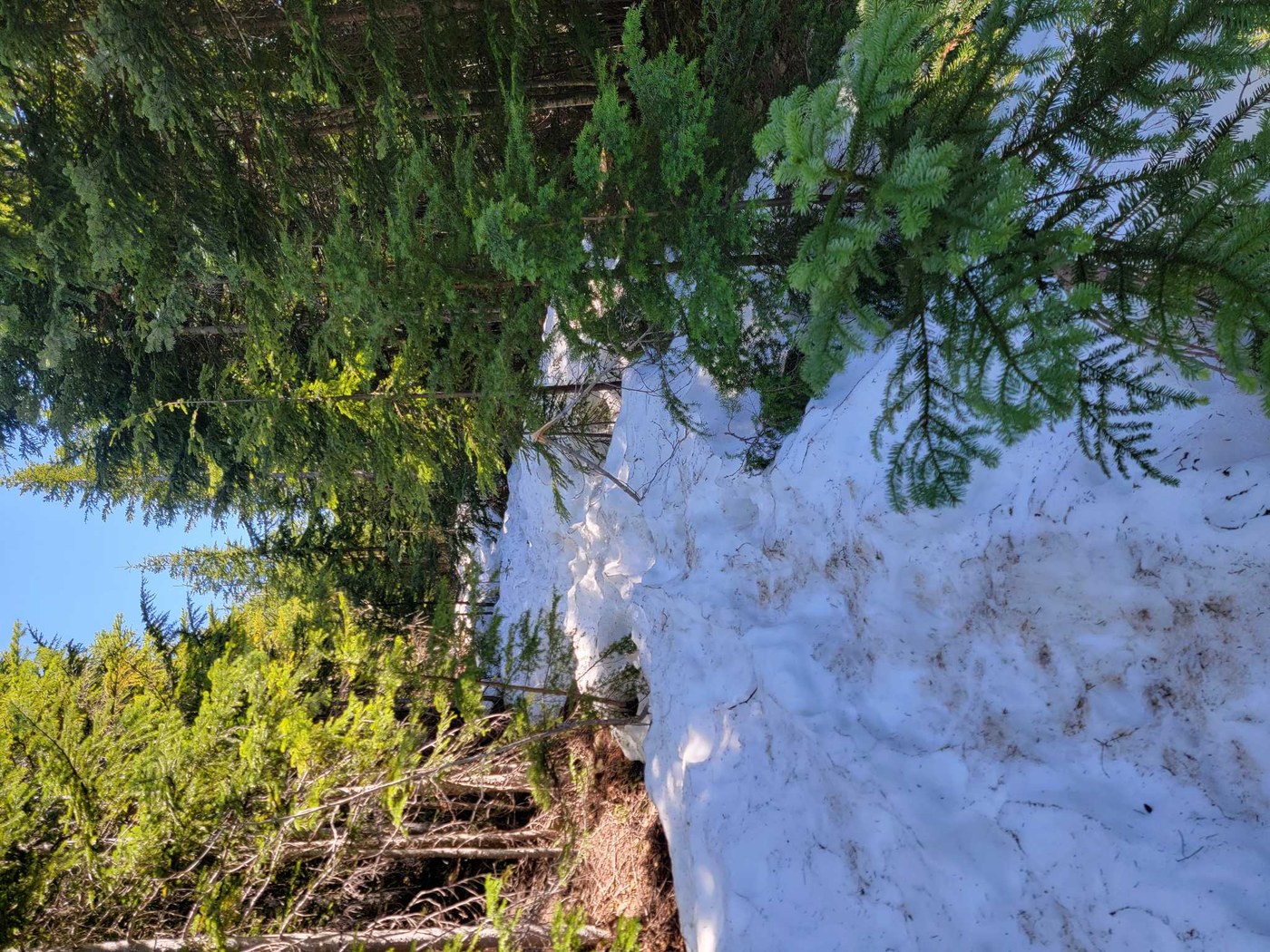 Trail was mainly dry. Seldom muddy spots. Gorgeous wildflowers spotted throughout the entire hike! snow on top of peak. My friend and I used spikes and had no issues, but also came across others on the peak who had few to no slips while wearing only tennis shoes or hiking boots. Great weather.