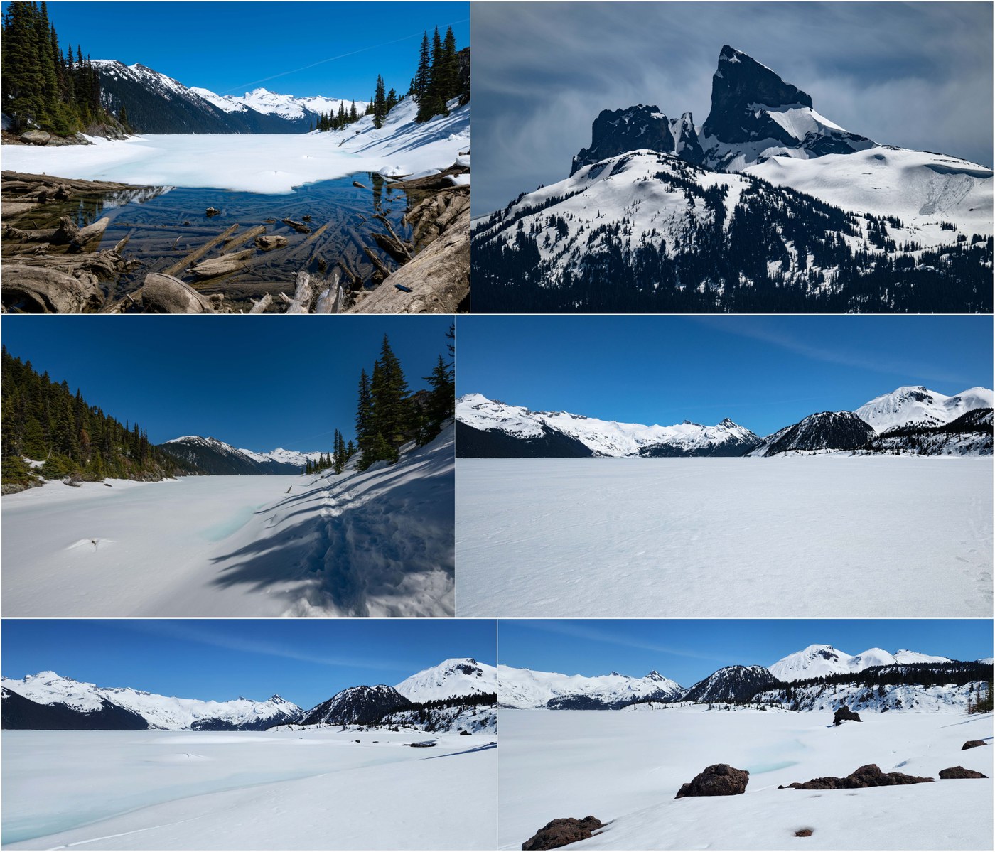 - Takeaway: This trail is open year around, and I definitely need to come back mid-winter to snowshoe. There are still tracks on the lake from backcountry skiers, and there are two bookable huts at the far end of the lake. Some snowfield skiers were descending the trail after some sunrise skiing. In summer, one can bring a pack-raft and explore although I do not think I have ever seen anyone else on the lake. The far shores are wild... one thing about Garibaldi Park is that the interior areas are very remote. Panorama Ridge is long as a day hike, but camping reservations are challenging to come by!