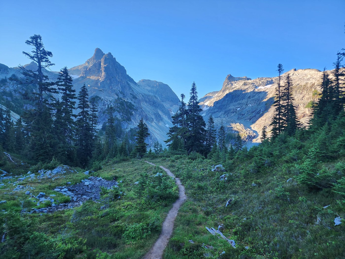 Sunday am, I woke up bright and early and the foot seemed okay, so I decided to just go super slow and see what happened. So glad I did! Felt very stiff and a bit sore up to Deception Pass, but then kept improving more and more on my way up to Tuck Lake and by the time I reached Robin Lakes I had no pain at all! I really have no idea why-was about to throw in the towel down at Hyas and go home, but took my time and felt great!