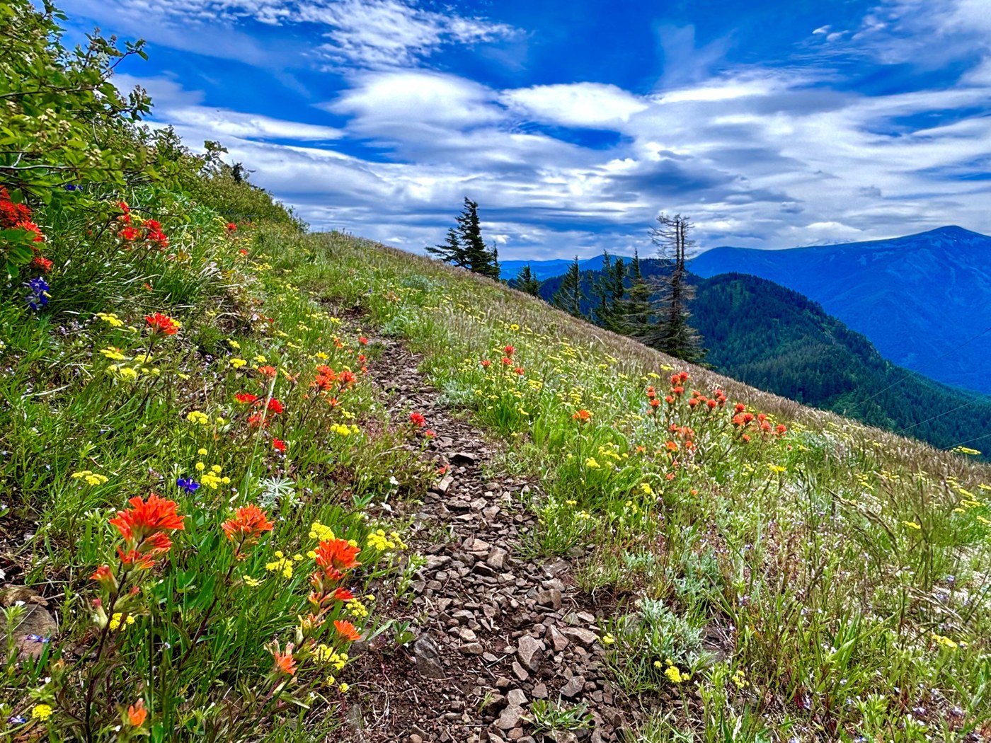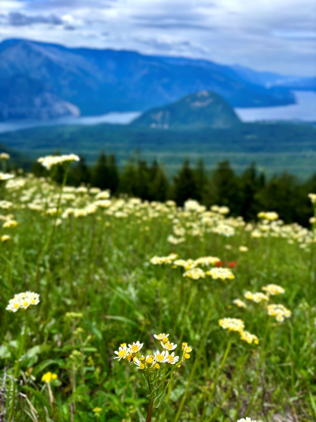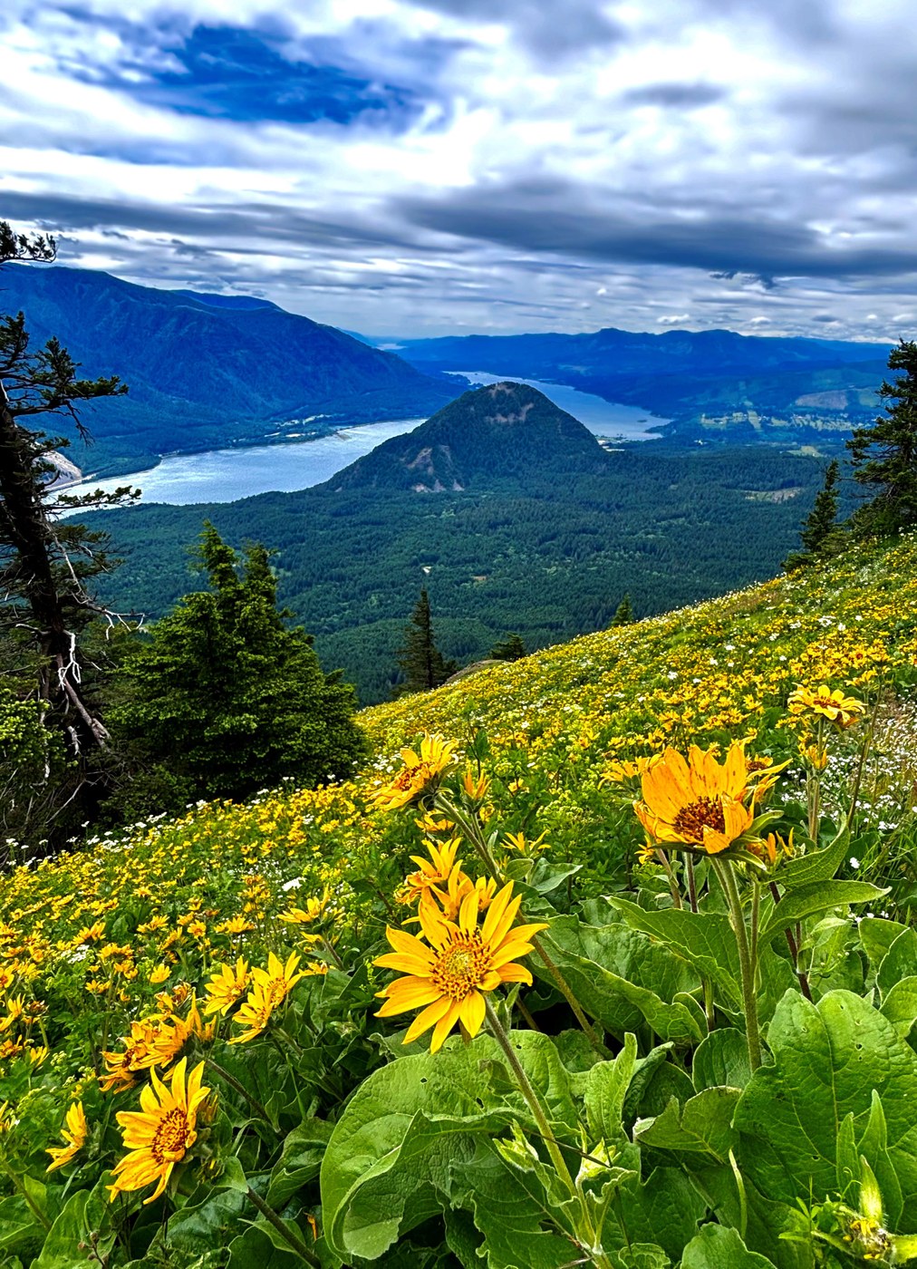 Detoured onto Dog Mountain on way back. Section from Augspurger to Dog Mountain is gorgeous right now with wildflowers. Balsamroot on Dog Mountain past its peak but still pretty. Total stats on hike was 5500 ft eg and 15 miles. I was glad to be taking shuttle back to give my legs a rest.