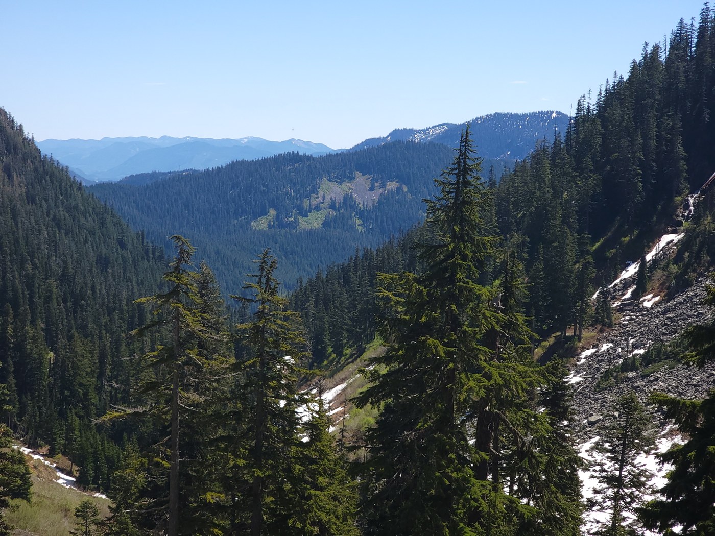 We hiked up to the lake today and had the trail almost to ourselves. Only came across one other hiker after crossing Denny Creek. The creek crossing was a little rough, there is a small log you can cross over. Water was rising on the return and the log wasn't far from the surface. Trail was flooded in areas and there were some large snow drifts that had to be crossed. We lost the trail a few times, but luckily we had the downloaded maps. Poles would have been very useful. Lake was starting to thaw out, but still 90% frozen over. Lots of wildflowers along the trail and small waterfalls everywhere.