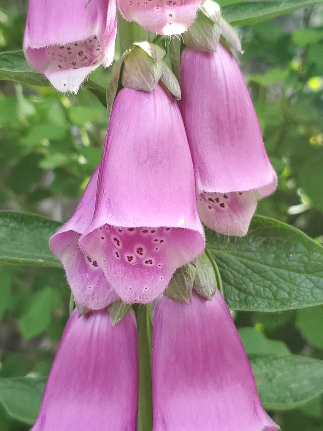 Our route was a loop starting on Road A, Whiskey Still, Boot, Mountain Beaver trails. There we found Carey Creek is still closed due to washout. Back up Mountain Beaver, east on Boot to Road A to Road G. On Road G there's a kind of deep drainage ditch with a shallow small creek. Getting down the bank and up the other side is doable with care. Then up Elk Ridge. There's a spring crossing the trail about halfway up. It's easy to cross. Then the Shadow trail to Road A, Road K, Road I, Holder Knob to Road A and back to the TH. The south leg of Holder Knob is a bit overgrown including thistle and stinging nettle. Stinging nettle is generally plentiful on all of the trails. Most of the trails are in good shape with good footing. We covered about 10.3 miles and 1120 gain. Saw 4 hikers, 5 horses and riders and three dogs. Everyone was friendly. Lots of banana slugs. One was 6 inches long! Lots of flowers, sometimes in huge beautiful banks together. Buttercup, Herb Robert and Candy flower/ miner's lettuce. Also saw lush scour rush and pink and white Fox Glove.