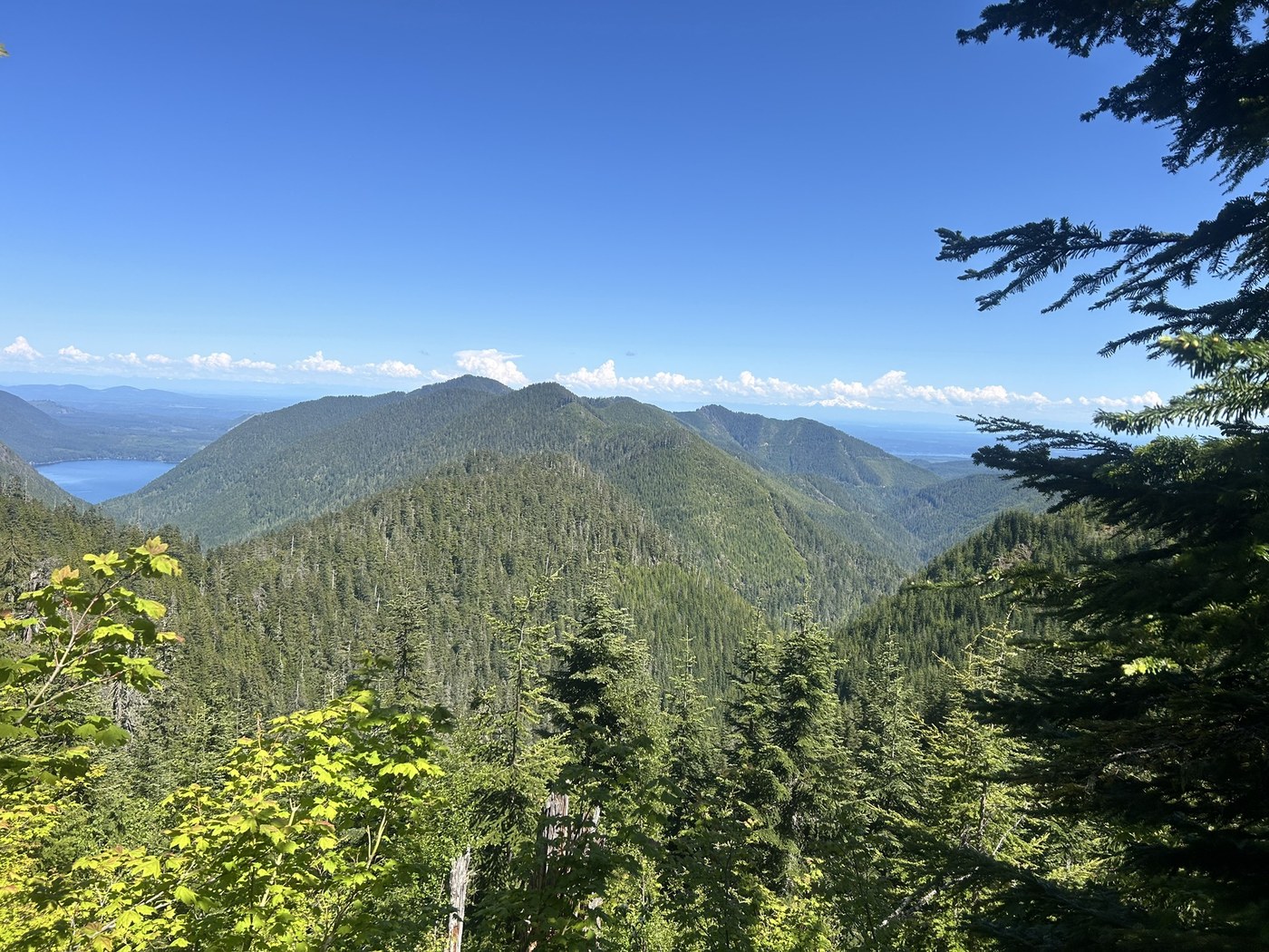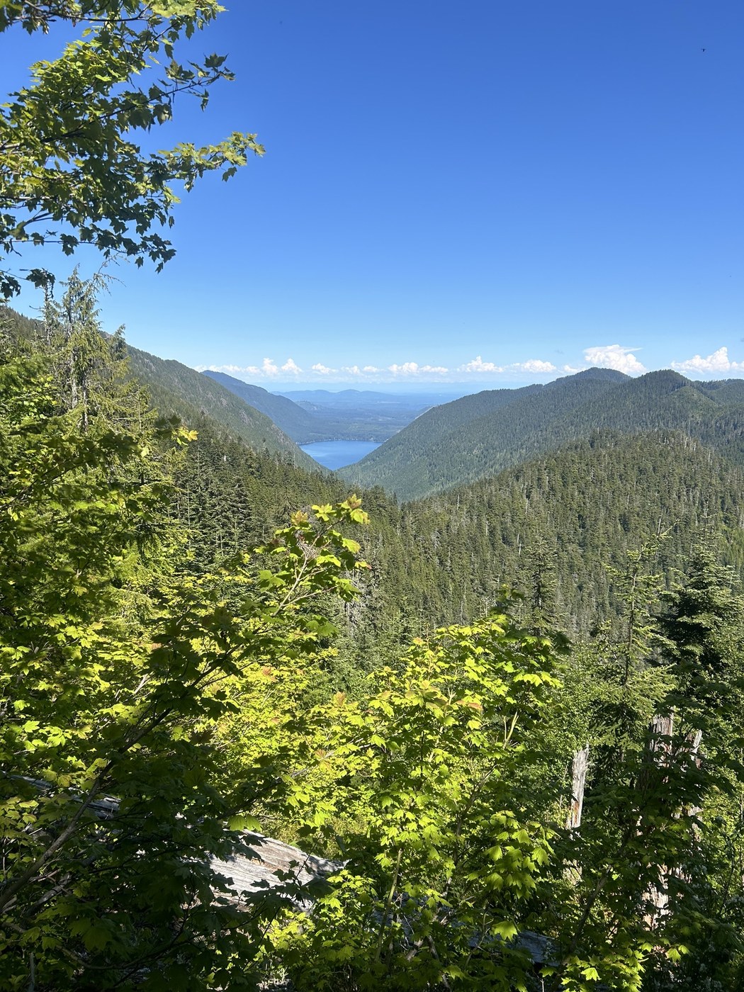 Beautiful sunny and warm day to spend on the Olympic peninsula on the border of ONP. I hiked the Dry Creek Trail to the Ridgeline just blow Dry Mountain starting from the TH nearest Staircase park entrance. Nothing spectacular about this trail, but nonetheless, it was beautiful woodland, some old grow, a pleasant stream crossing, a peekaboo view of lake Cushman from the ridge, and complete solitude. Start trail by walking down the private road and following “Trail” signs. Other than two people on the trail, I had it to myself. There are several down logs, but each have a notch for climbing over which made it fun. occasionally, the trail disappeared slightly below vegetation, but still easy to follow. No grand view from the top. Once on Ridgeline, not worth following trail to the end as it only drops down to the second trailhead. Fording Dry Creek pretty easy: follow obvious cut in to the creek off main trail and look for pink flagging on other side, which is where the trail picks up again. 4 hrs to ridge, 3 hrs back, 3K elevation gain.
