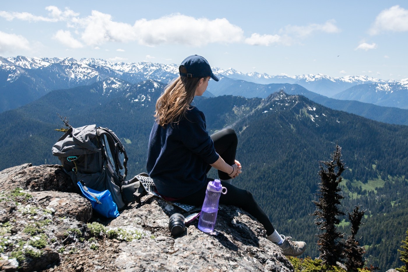 I set out around 9AM on weekday from the Sunrise parking lot. It was a bit busy but I was expecting much worse so was pleasantly surprised. A few other hikers and myself missed the turn off for Klahhane because it was somewhat obscured by a bit of snow which is probably melted down considerably by now. Some places were a bit muddy due to the snow melt but nothing too bad. The few snow patches weren't bad either, I made it by just fine in just my boots. Man these switchbacks up to the ridge felt particularly brutal for some reason. There was only one party there when I arrived at the ridge, but a large group came up behind me so I continued on for about a mile and a half or so for some sweet, sweet solitude and sweeping views which I found in spades. Had a beautiful outcropping all to myself the hour-ish I spent there! It was hot at this point so I grabbed a couple of snowballs to carry in my hands on the way back to keep me cool. Stunning day in the mountains!