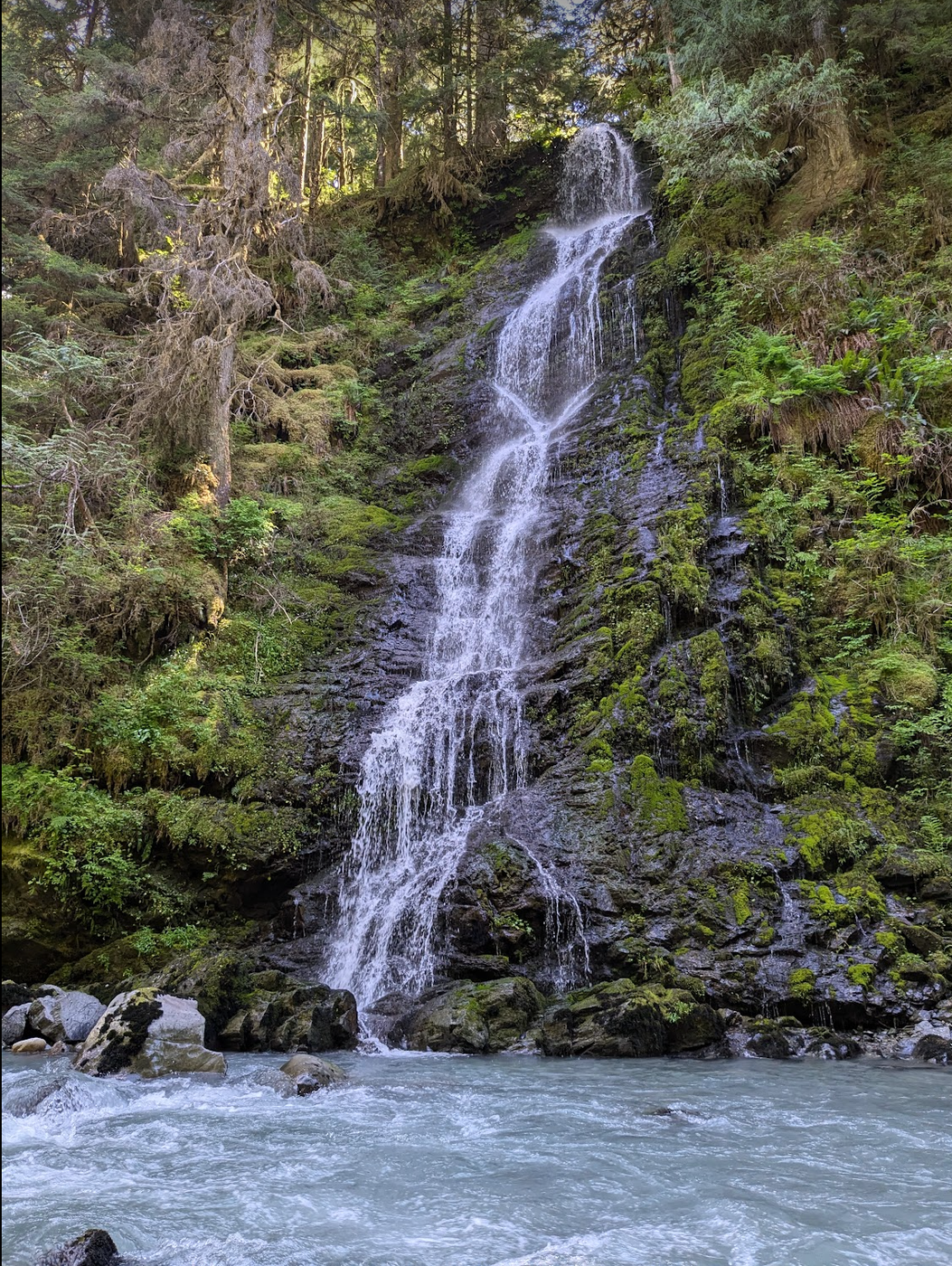 First waterfall is at 1.5 miles, second is at 2.5 miles which makes for a nice 5 mile out-and-back.