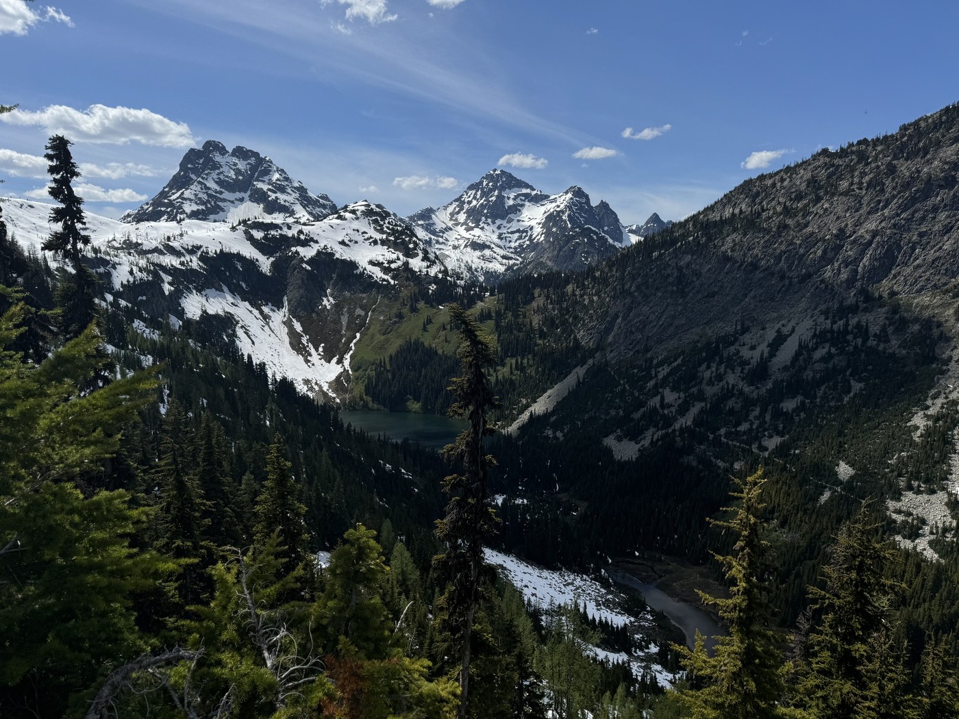 Bring poles and microspikes! We went clockwise, starting by visiting Rainy Lake (this trail is short, flat, paved, good for kids). Rainy Lake was nice (I wouldn’t say spectacular but nice). Then we backtracked a bit to take the clockwise trail up Maple Pass. The trail was visible / snow free for the first 1.25 miles up, but not much to see along the way because it’s wooded and you’re working to climb ~1,000 ft in elevation. After 1.25 miles, you hit a few snow patches (including some snowy inclines that I found ok to go up but very slippery to go down) and shortly after you will reach a great overlook of Lake Ann and the valley below. This is a good turnaround point if you don’t want to slog through a lot more snow (the trail is no longer visible and snow is slippery as it melts - and as it melts more it’s possible you will punch through). Lots of people were going the full loop today but it didn’t seem like an enjoyable or safe situation to us, so we turned around at the viewpoint and still felt it was a worthwhile hike. We’ll come back once the conditions are better.